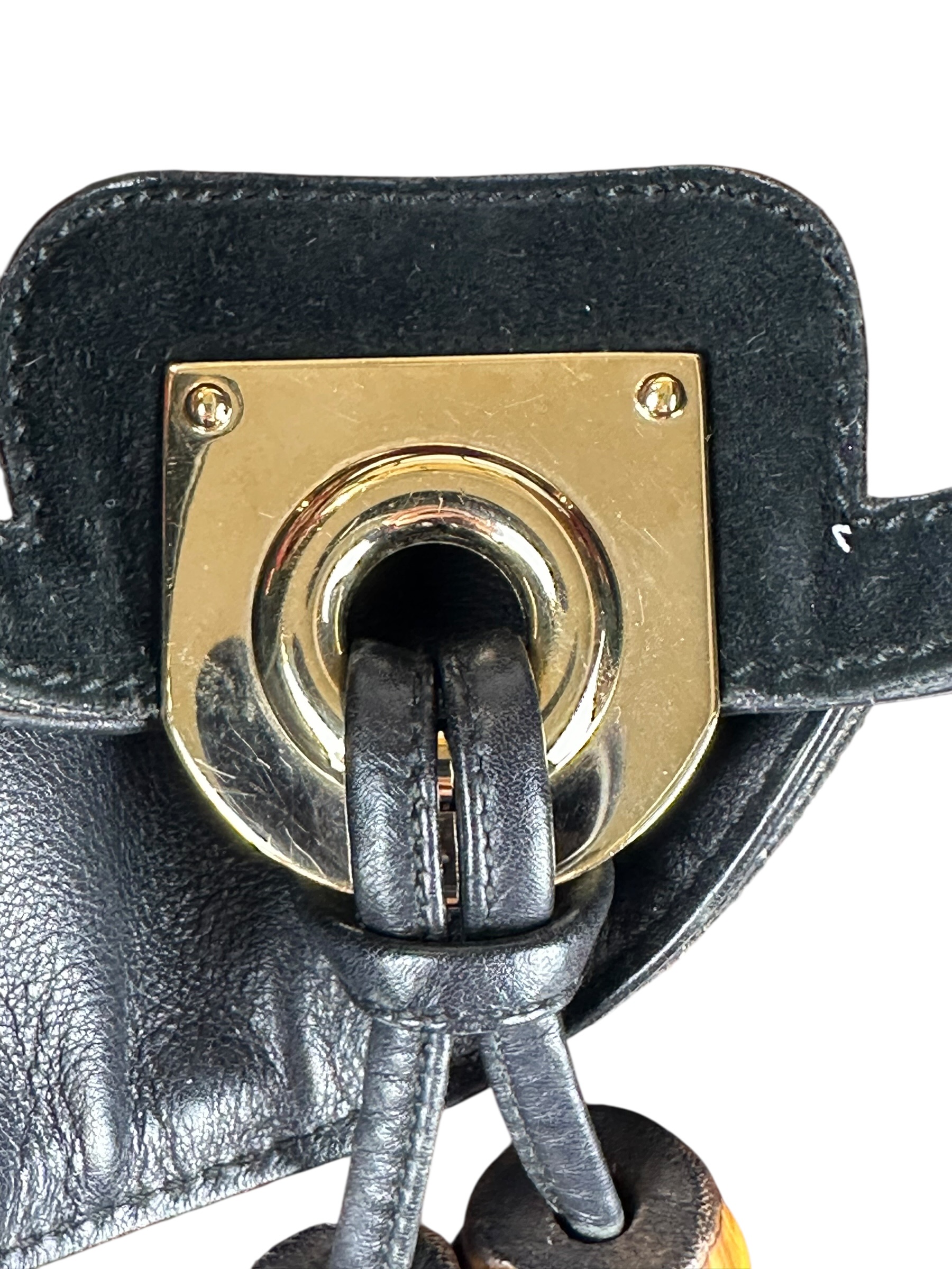 - Lucchetto dorato (chiave mancante), con porta lucchetto removibile in pelle
