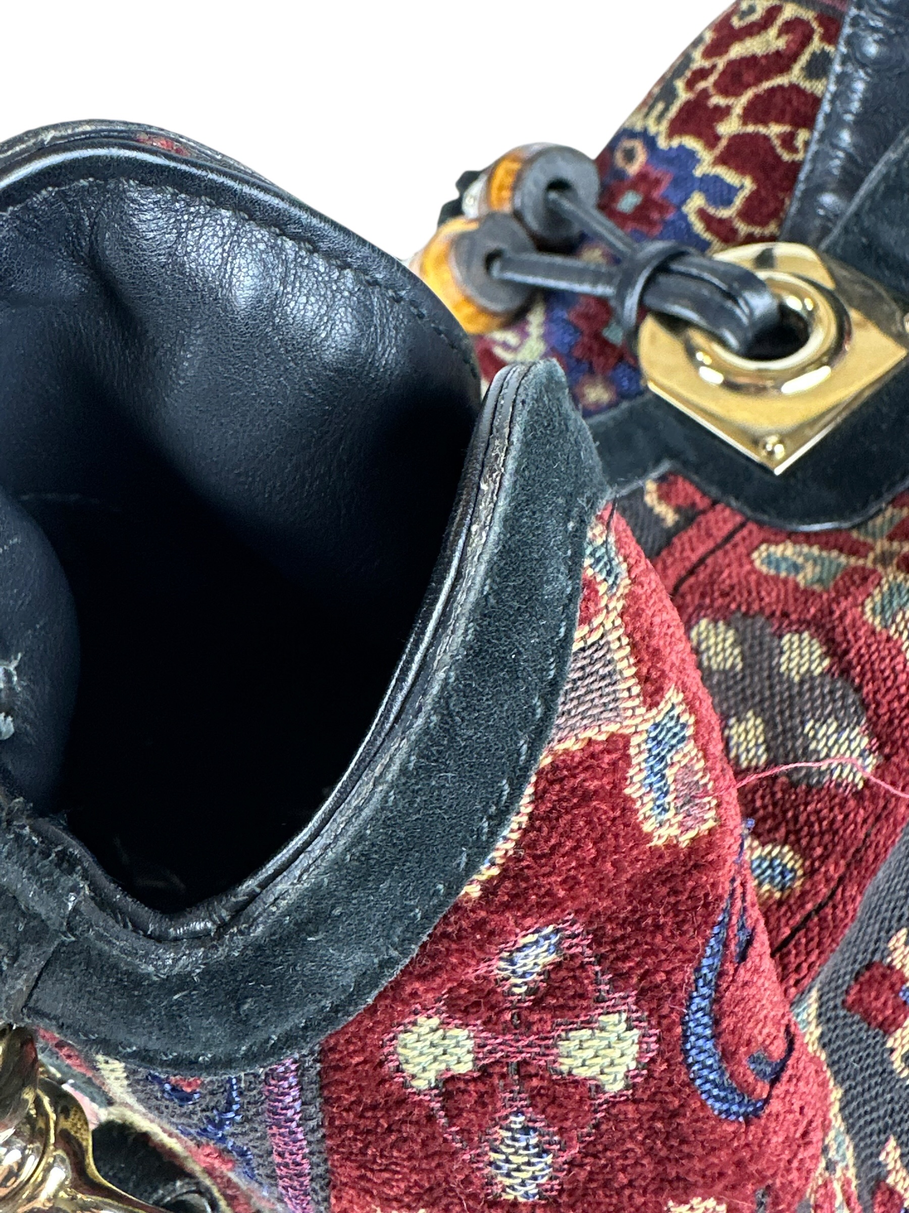 Minimi segni di usura sulle parti in pelle di angoli, bordi superiori e tracolla. - Interno in ottime condizioni.
