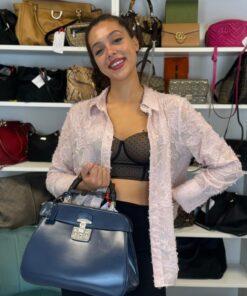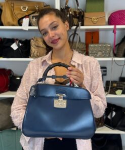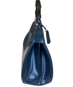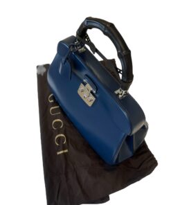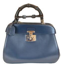 Borsa Gucci Lady Lock Plain Bamboo Blu, da portare a mano, al polso o nell’incavo del gomito, tramite il bellissimo manico in Bamboo.