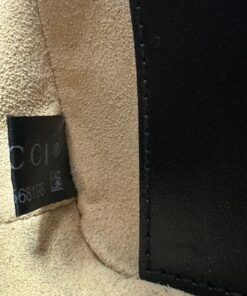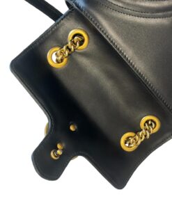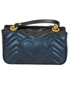 La pattina frontale è rifinita dal logo GG in metallo anticato color oro, mentre sul retro è presente una bellissima trapuntatura a forma di cuore.