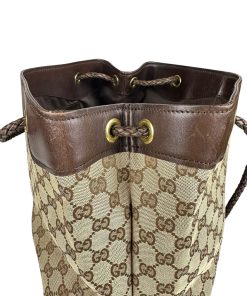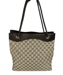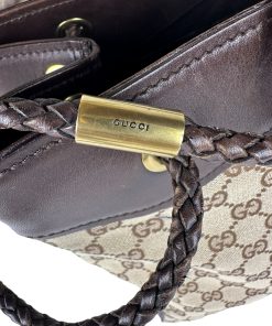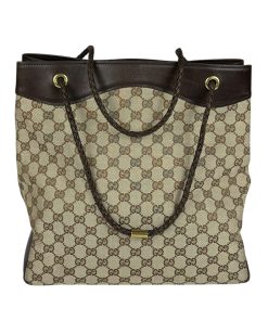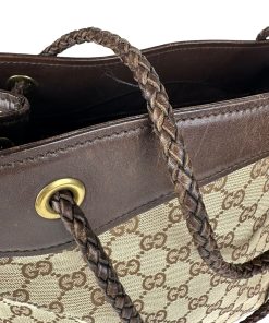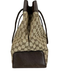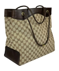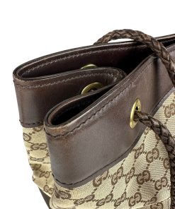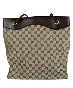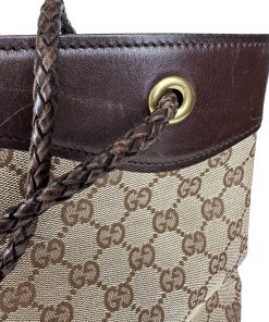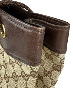 Borsa Gucci Shopper in Tela Supreme GG Beige e Marrone e Pelle Marrone