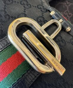 Dettaglio Nastro Web verde e rosso, caratteristica distintiva di Gucci, con bordi in pelle.