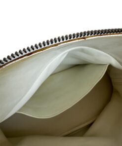 I manici sono leggermente ingialliti, così come la linguetta della cerniera ed il lucchetto. - Interno discrete condizioni. I bordi sono ingialliti e presentano segni di usura vicino alla chiusura lampo.