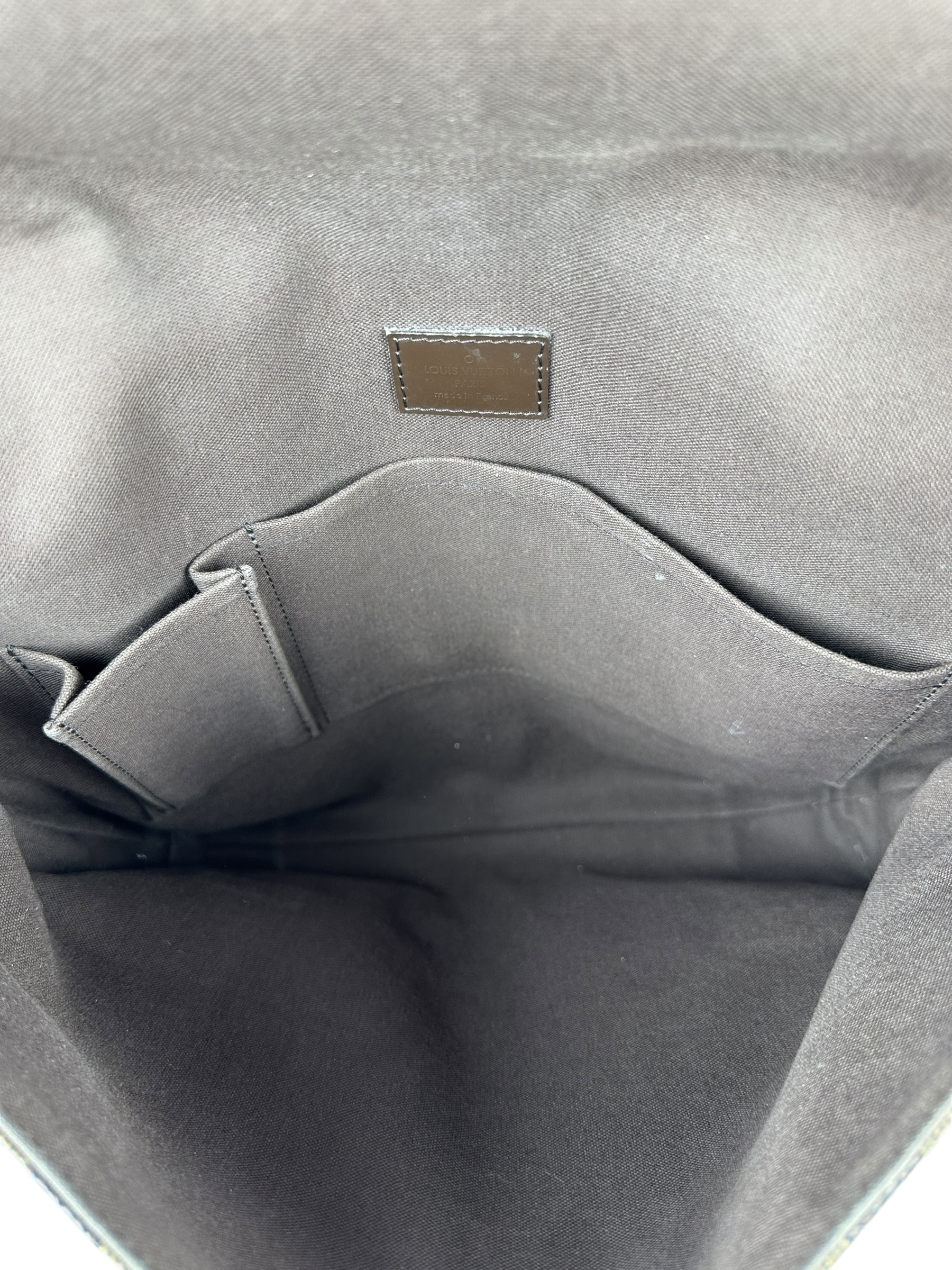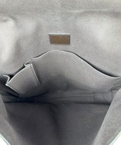 Presenti minimi segni di utilizzo sulla tracolla, su hardware e sulla placca esterna in pelle, mostrati nelle foto.