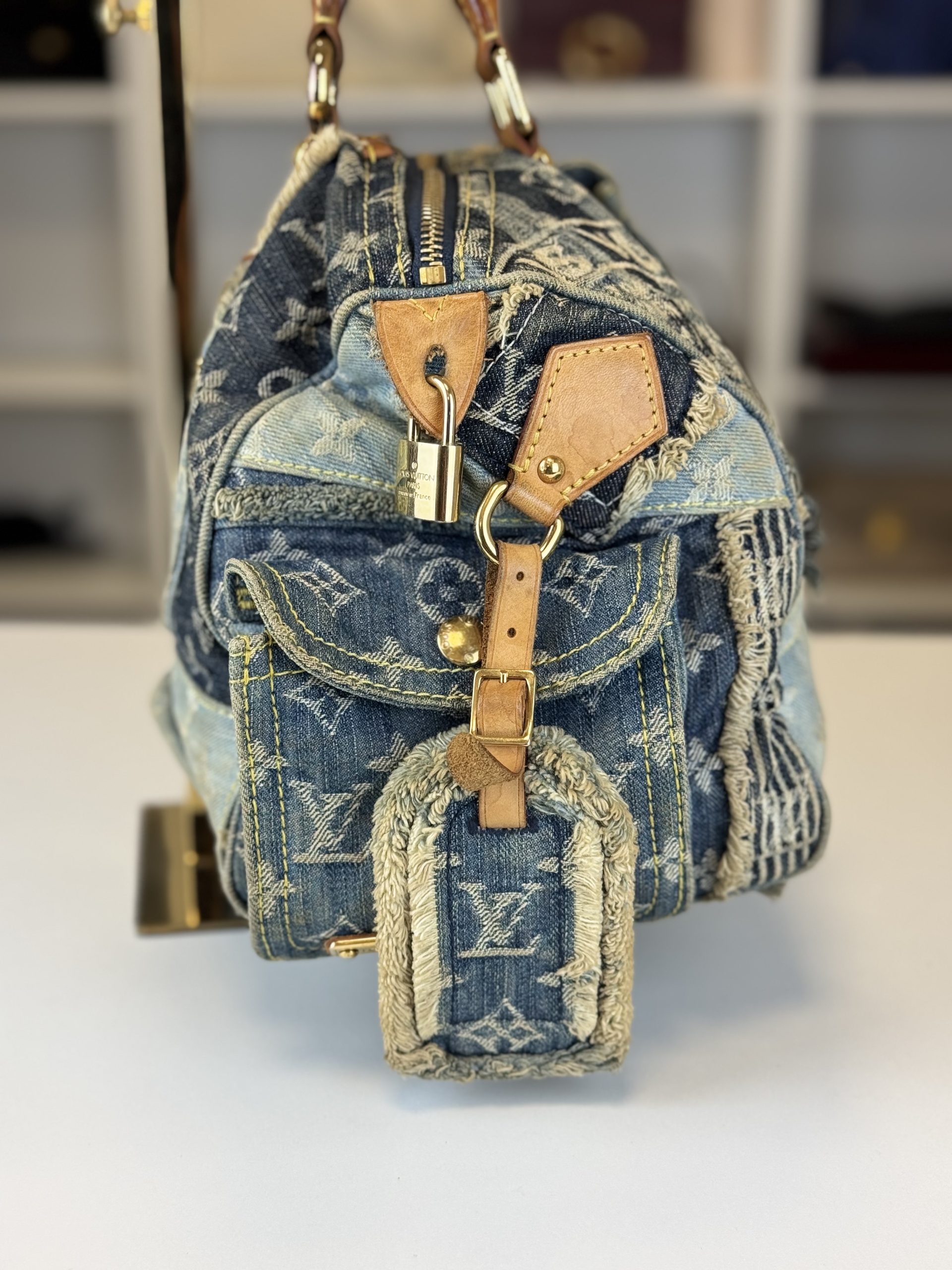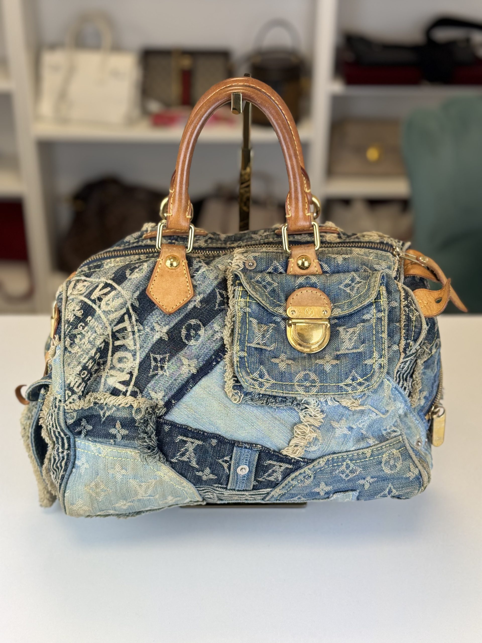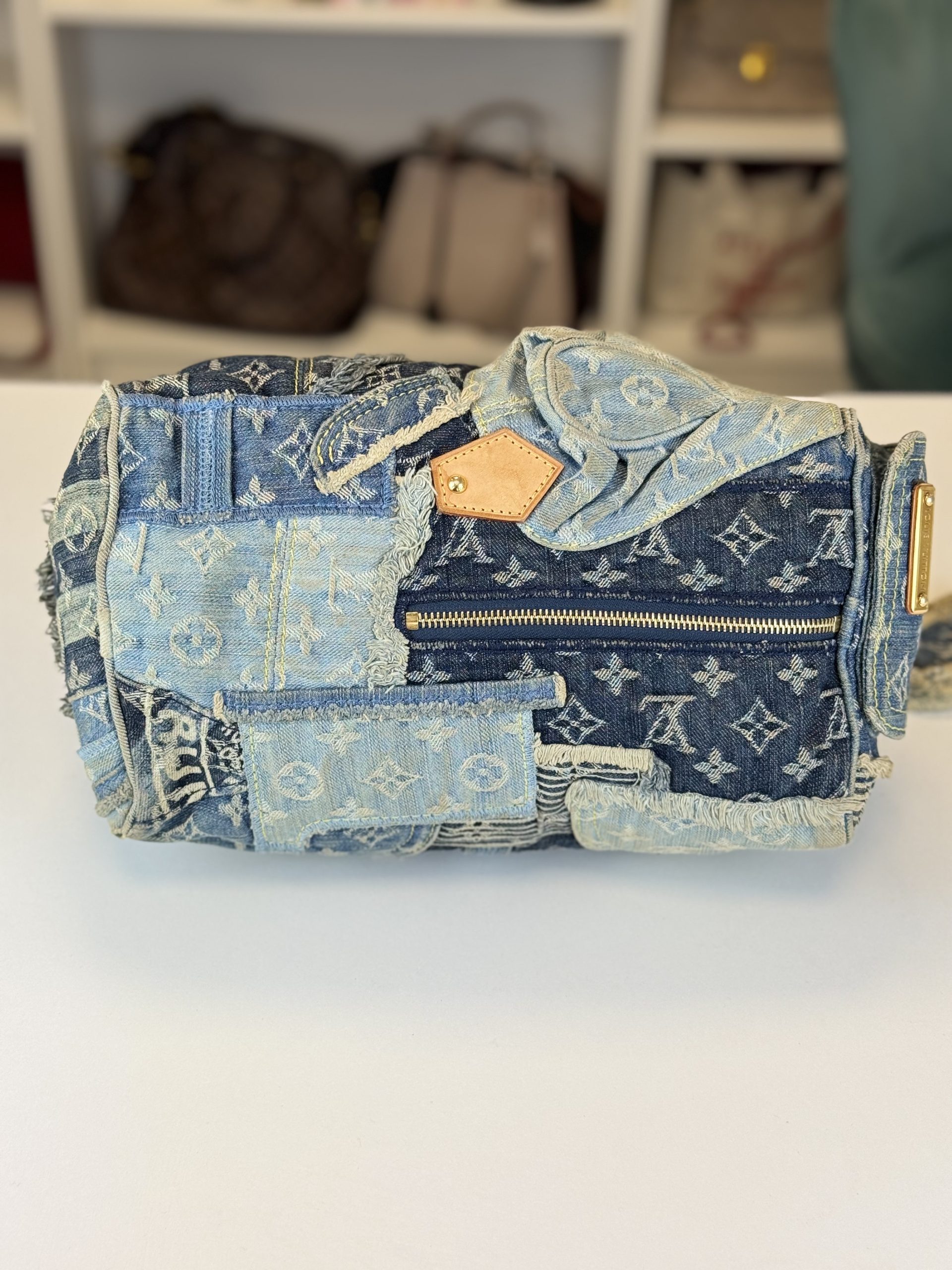 Borsa Louis Vuitton Speedy 30 in Denim Patchwork
