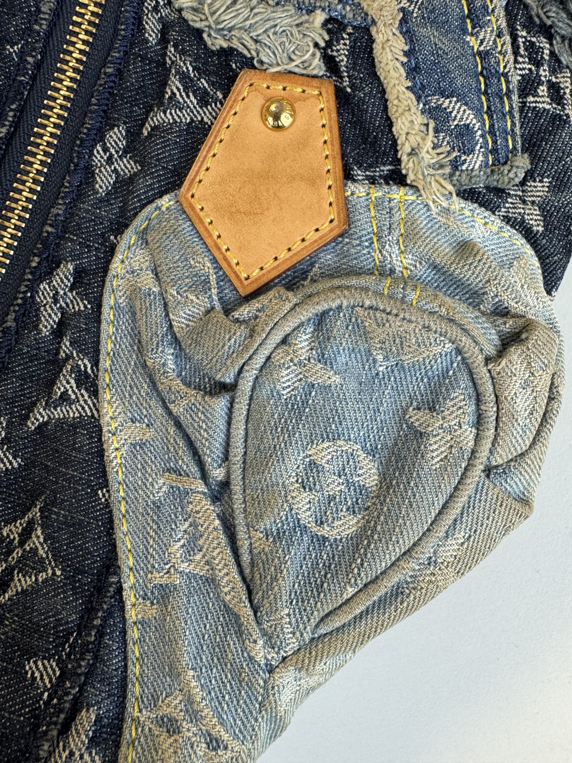 Straordinaria Borsa Louis Vuitton Speedy 30 in Denim Patchwork edizione limitata del 2007 disegnata da Marc Jacobs per la collezione primavera/estate.