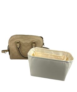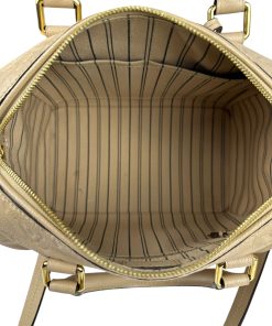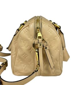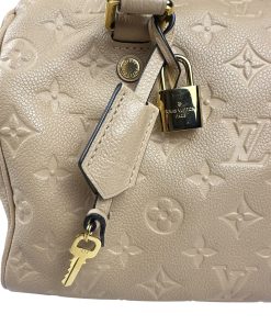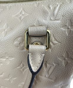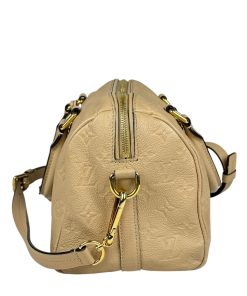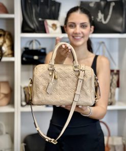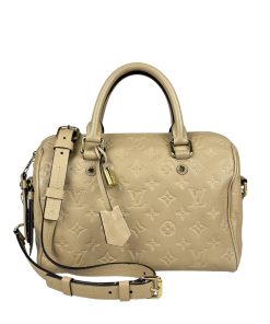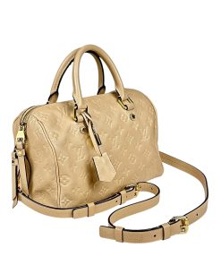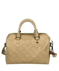 Famosa e richiestissima, in questa versione la Borsa Louis Vuitton Speedy Bandoulière 25 in Pelle Monogram Empreinte Beige è rivisitata in chiave ancora più elegante.