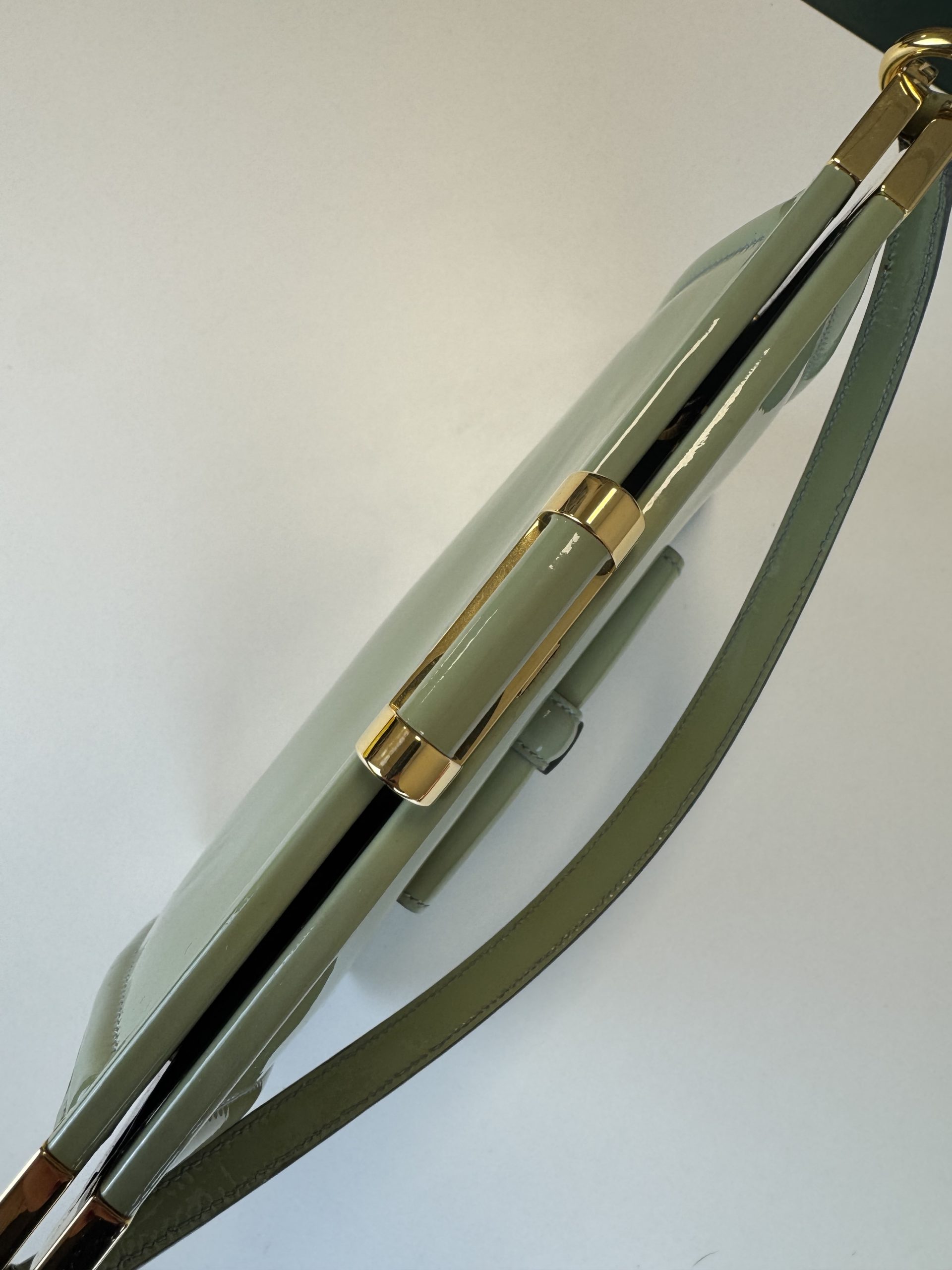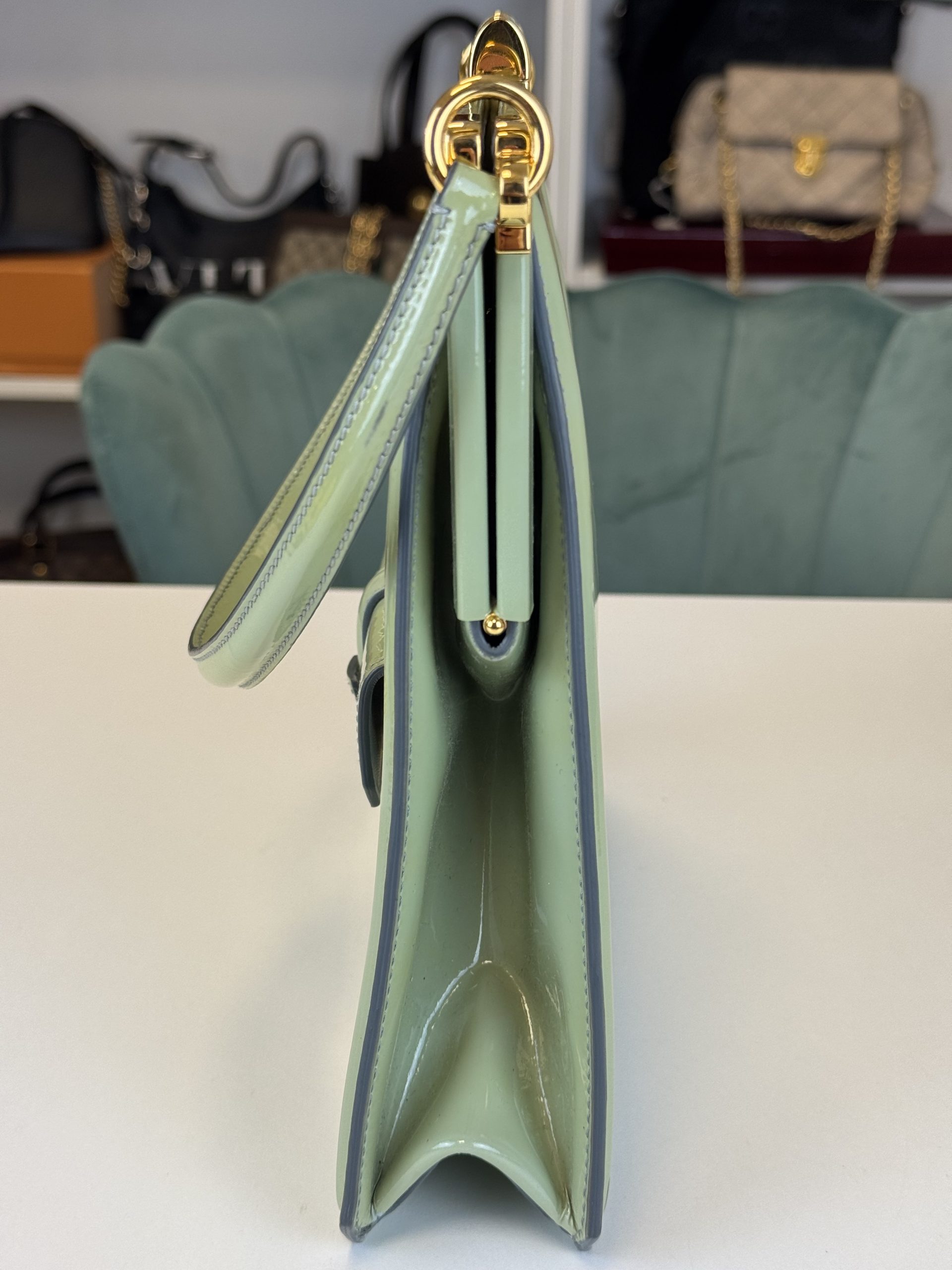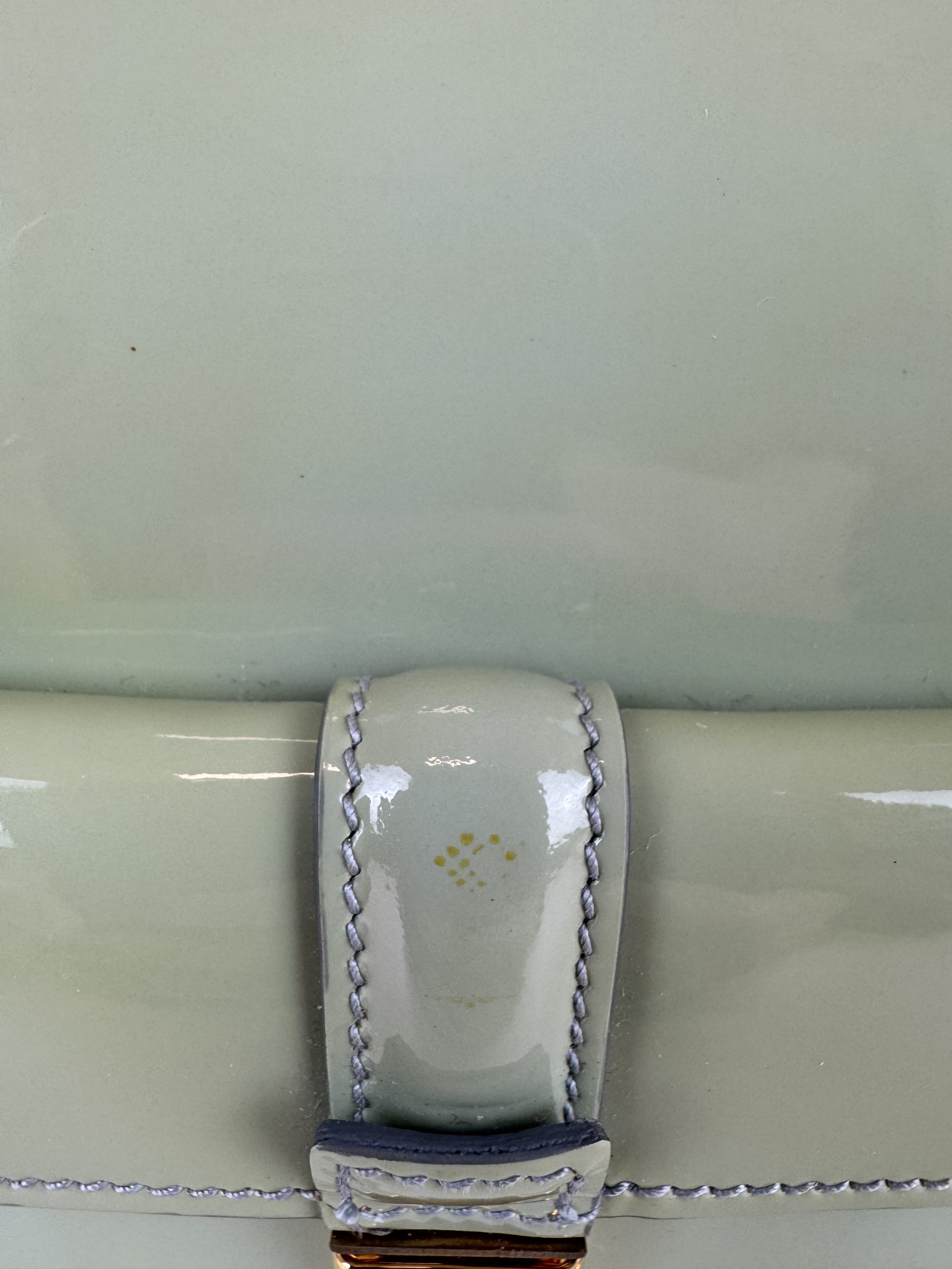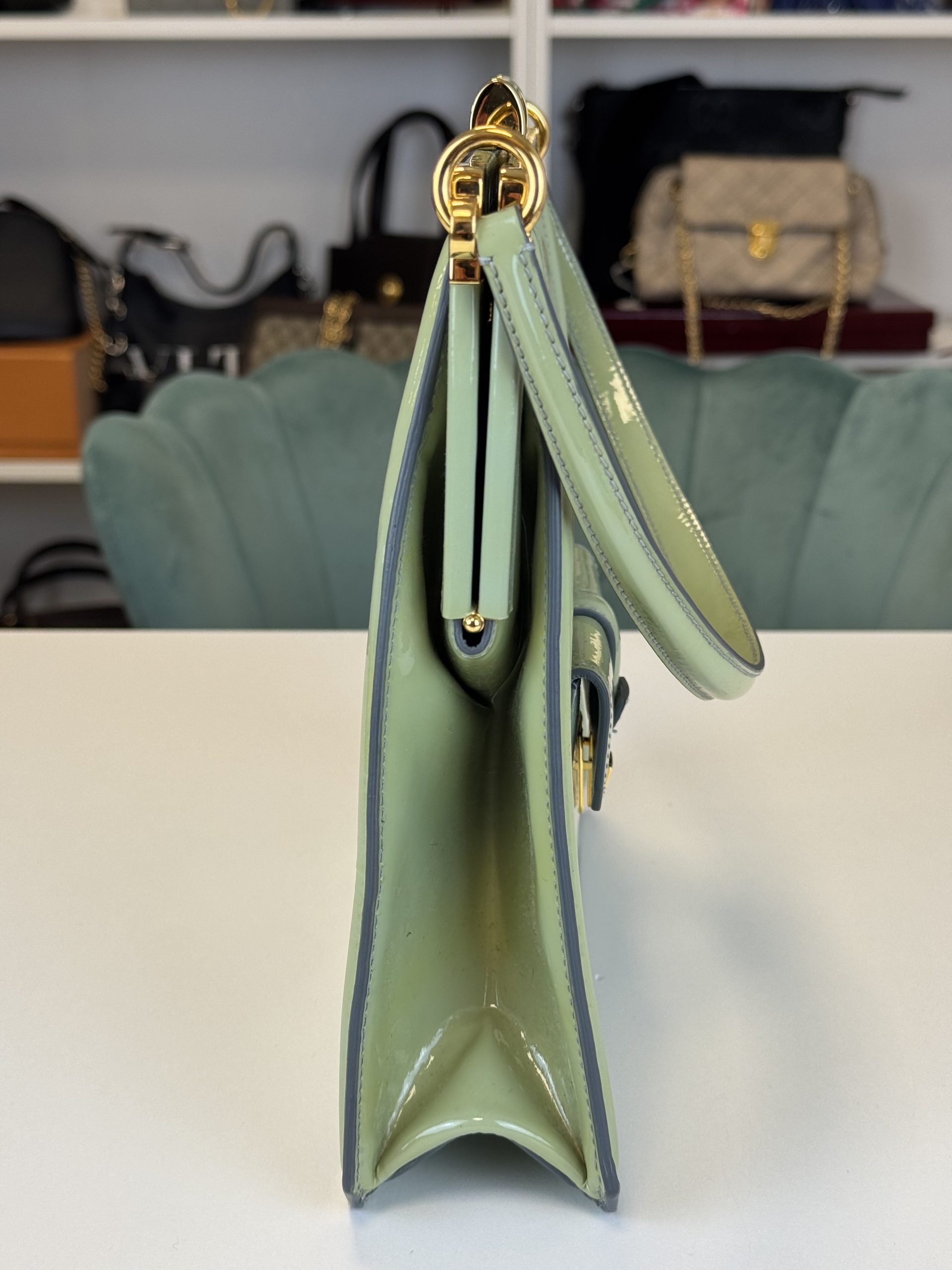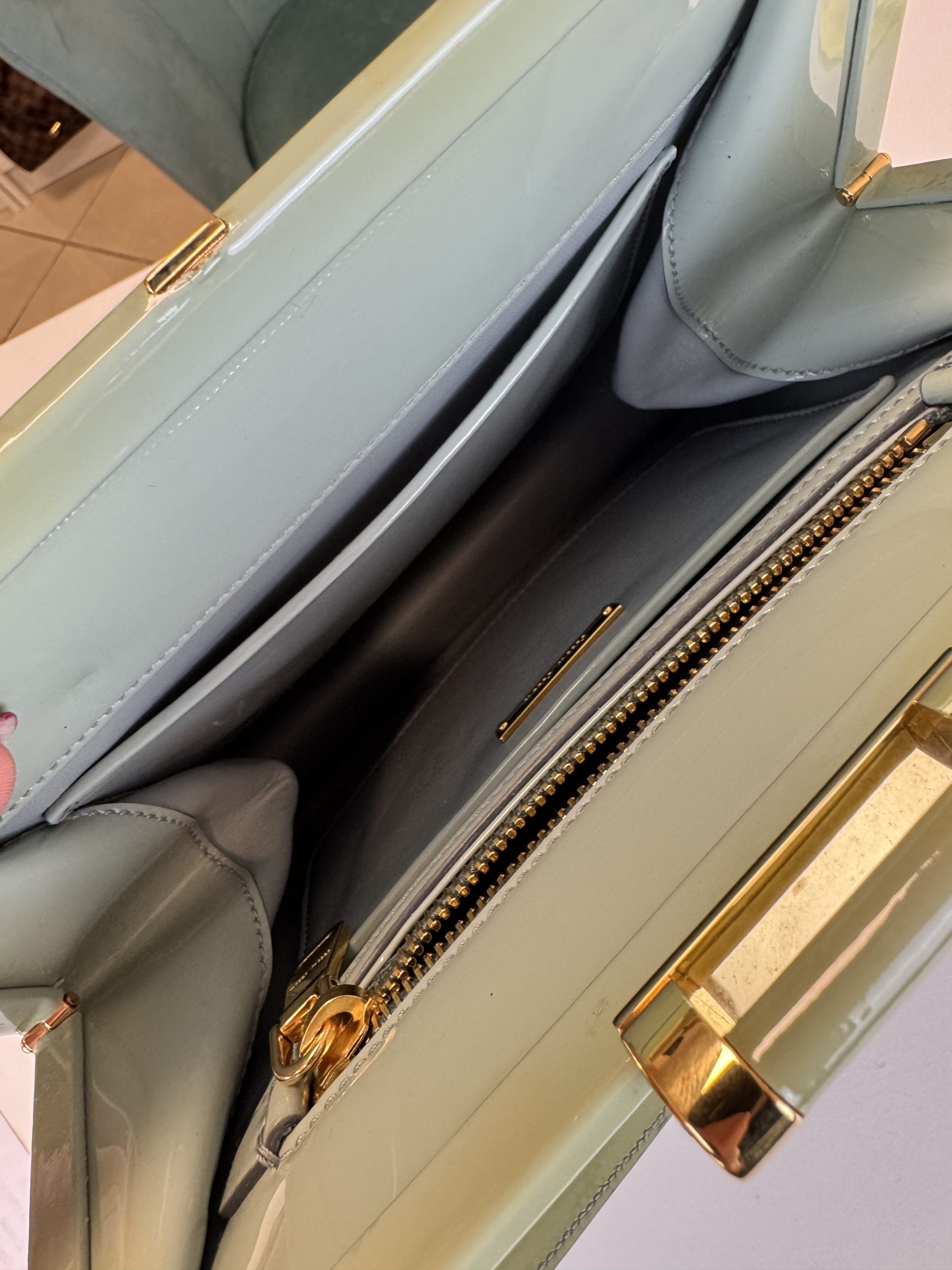 Deliziosa borsa Miu Miu in pelle verniciata dal color verde menta pastello.