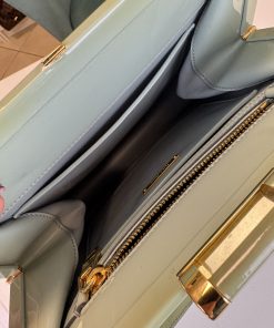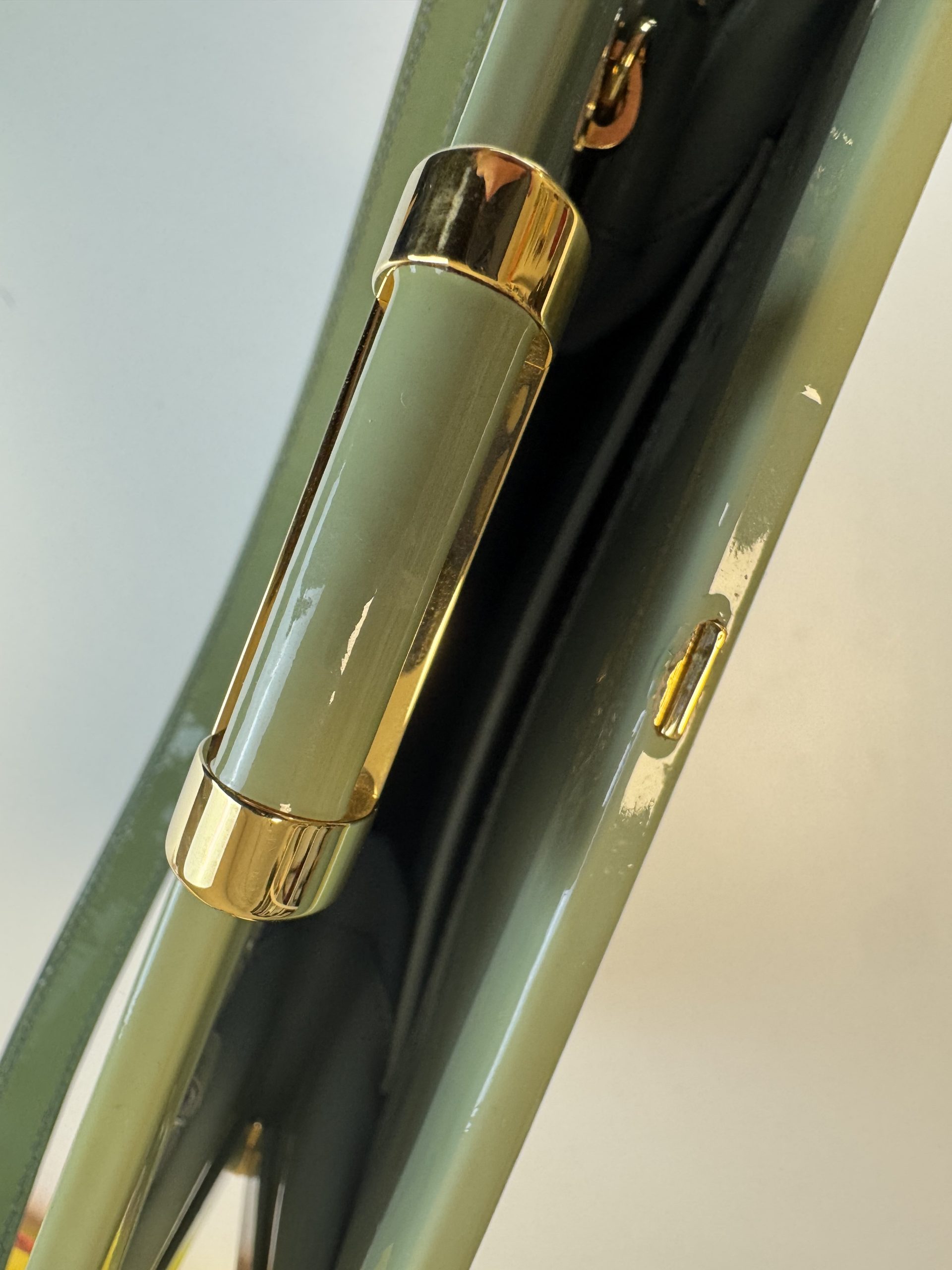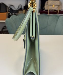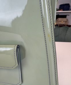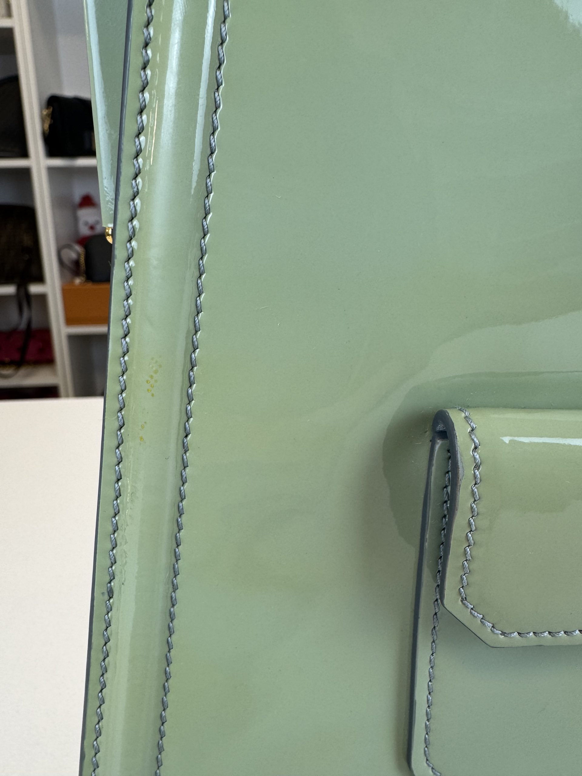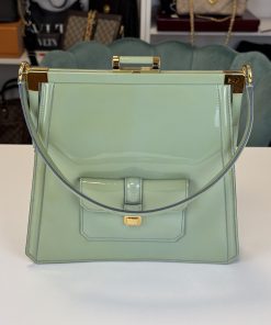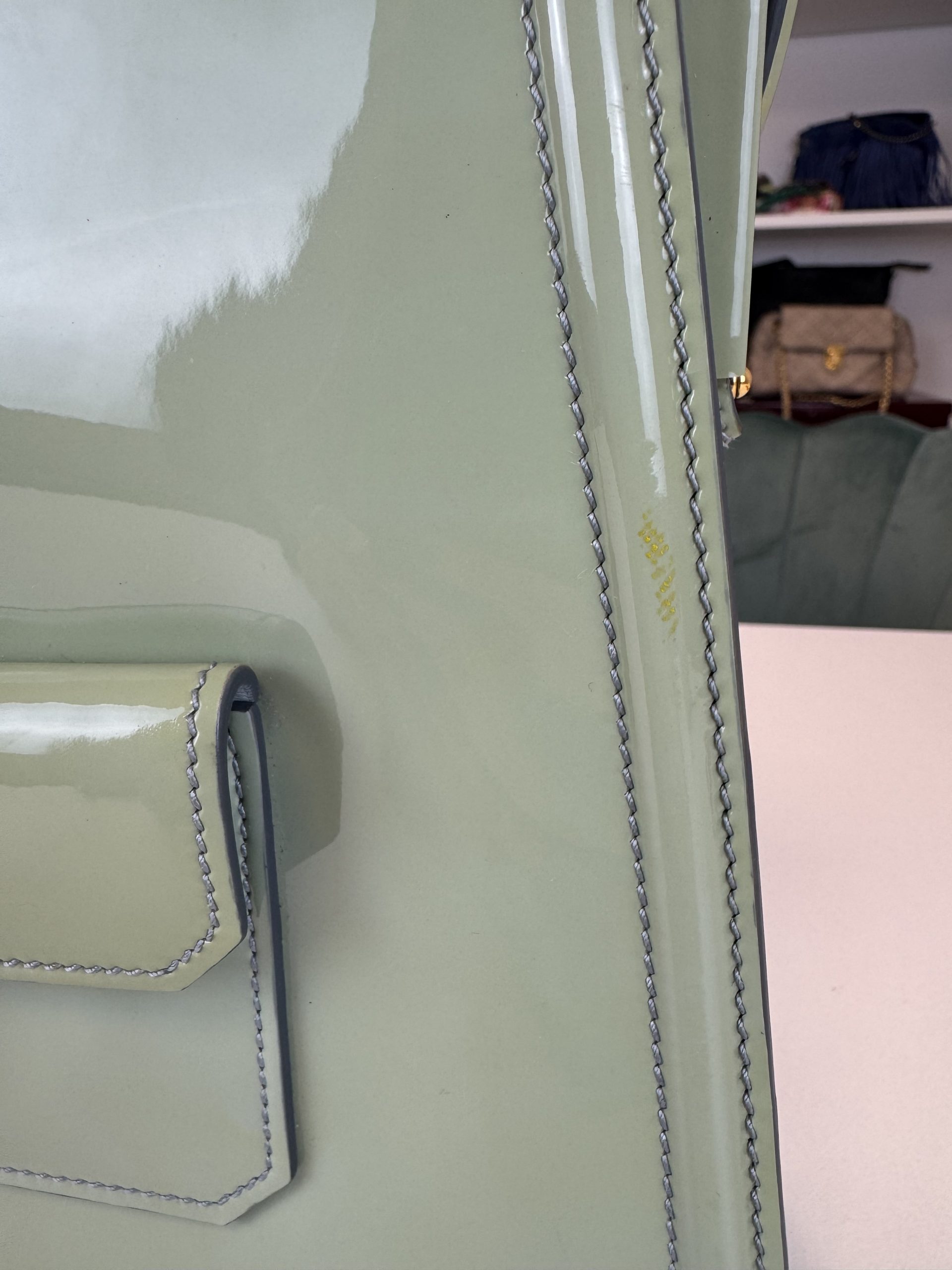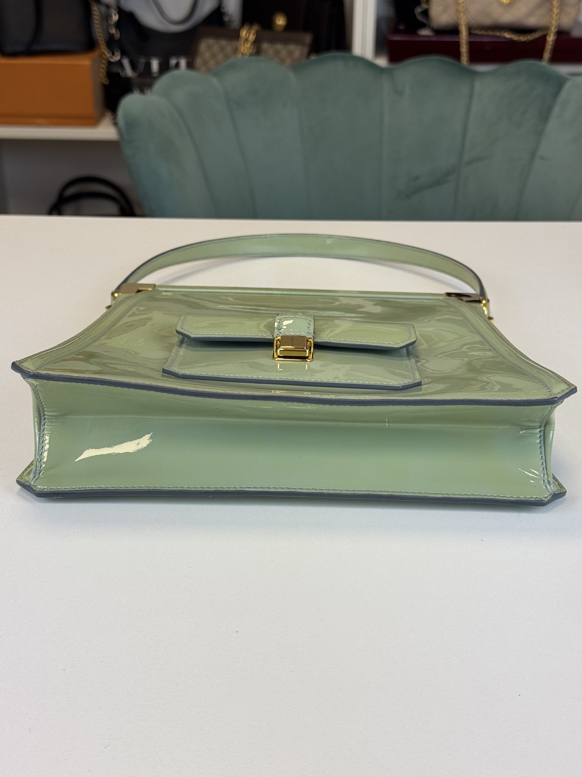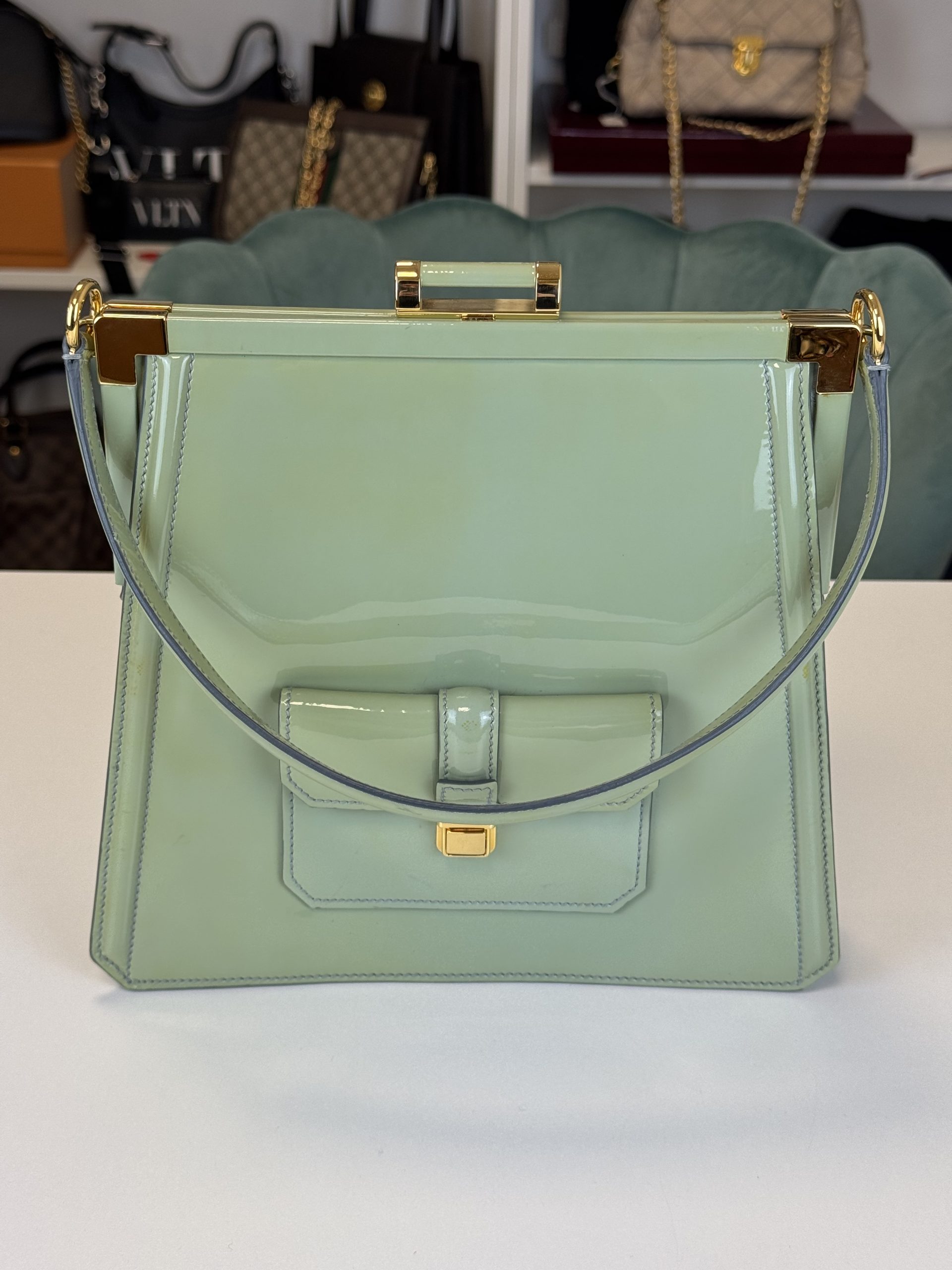 Deliziosa borsa Miu Miu in pelle verniciata dal color verde menta pastello.