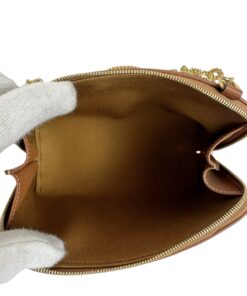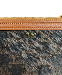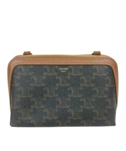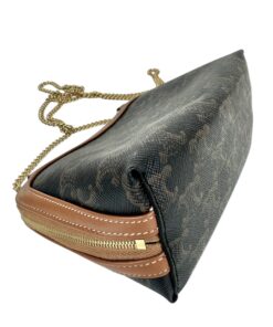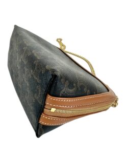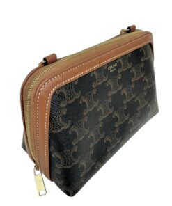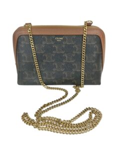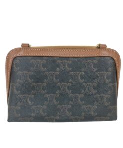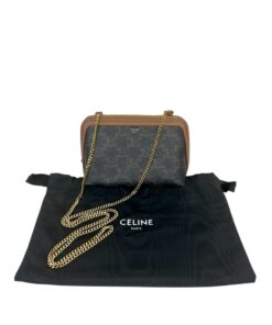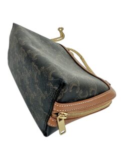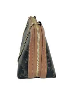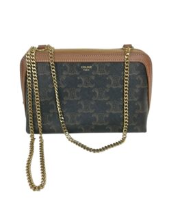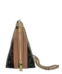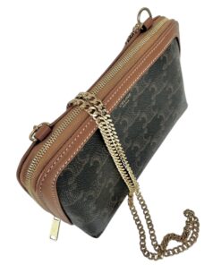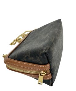 Borsa Pochette Celine Mini Bag Con Catena in Tela Triomphe e Pelle Marrone.