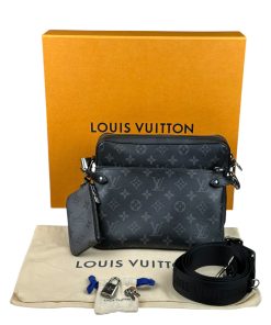 Bellissima Borsa Pochette Louis Vuitton Trio Messenger in Tela Monogram Eclipse, versatilissima e composta da 3 prodotti che possono essere utilizzati insieme, oppure come 3 accessori separati