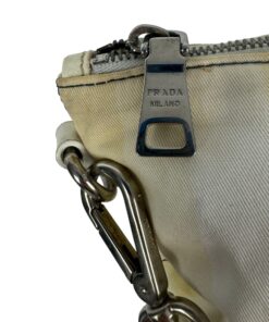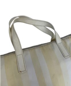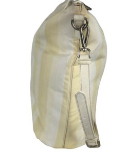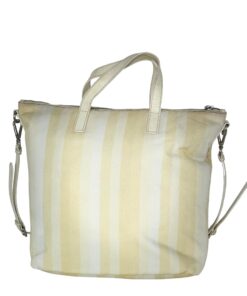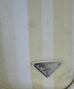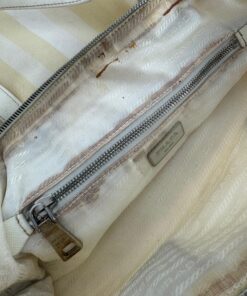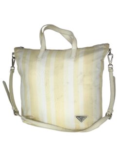Borsa Prada 2Way Shoulder Bag Hand Bag Canvas Gialla e Bianca, realizzata in tessuto rigato.