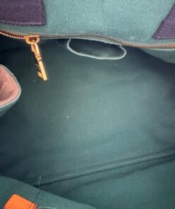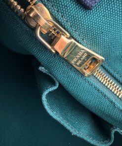 Dotata di doppio manico blu, internamente è caratterizzata da un unico vano verde, con due tasche a zip e una tasca piccola aperta.