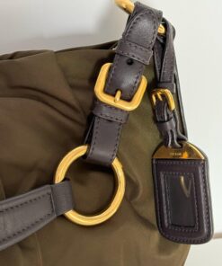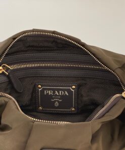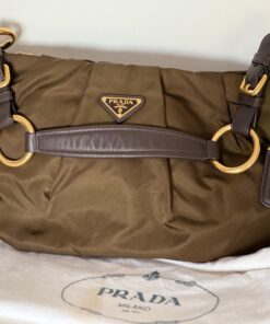Borsa a spalla Prada Hobo, in nylon verde oliva, in condizioni ottime, praticamente nuova.