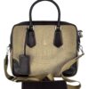 Doppia apertura: la prima con patta frontale, arricchita dalla chiusura pushlock in metallo dorato e la seconda con cerniera fissabile tramite il lucchetto in dotazione.