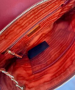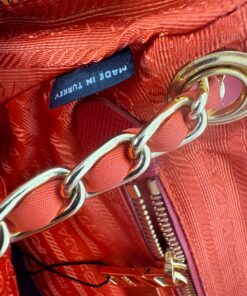 Solare e bellissima, questa Borsa Prada in Nylon Arancione con Catena Oro è la perfetta compagna di stile delle giornate estive.