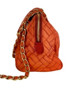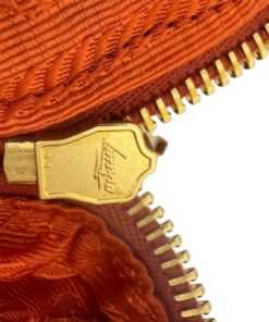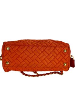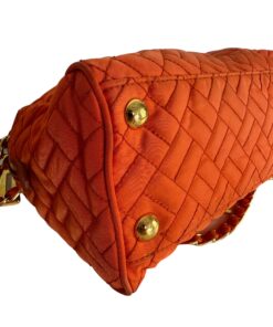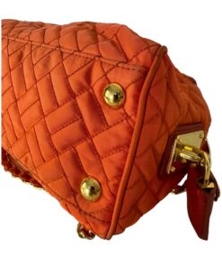 Realizzata nell’ecologico e lavabile nylon Prada, in questo caso trapuntato a spina di pesce, di colore arancione.