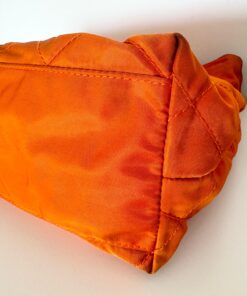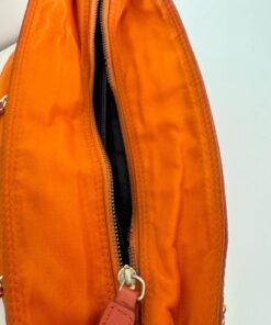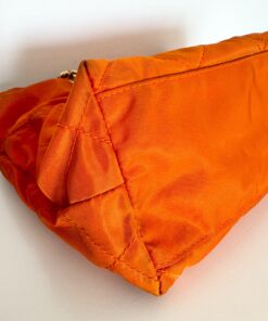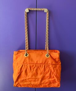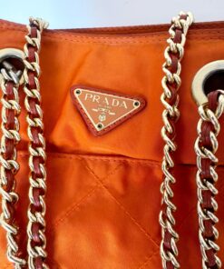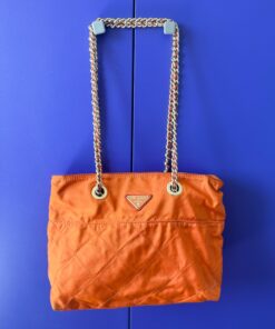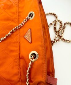 Borsa Prada in nylon arancione, da portare a spalla, grazie ai bei manici a catena con infilatura in pelle arancione.