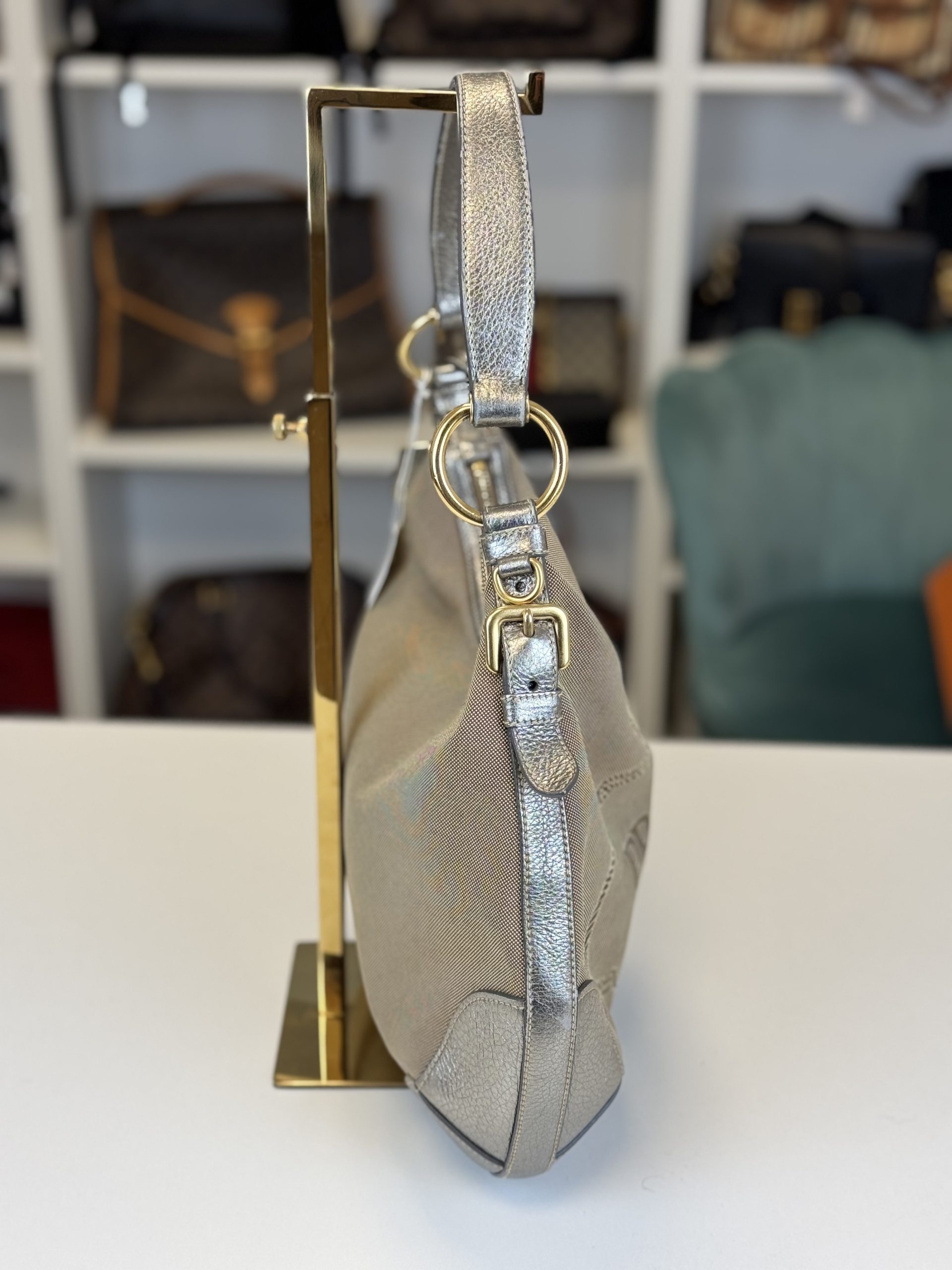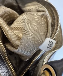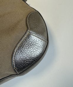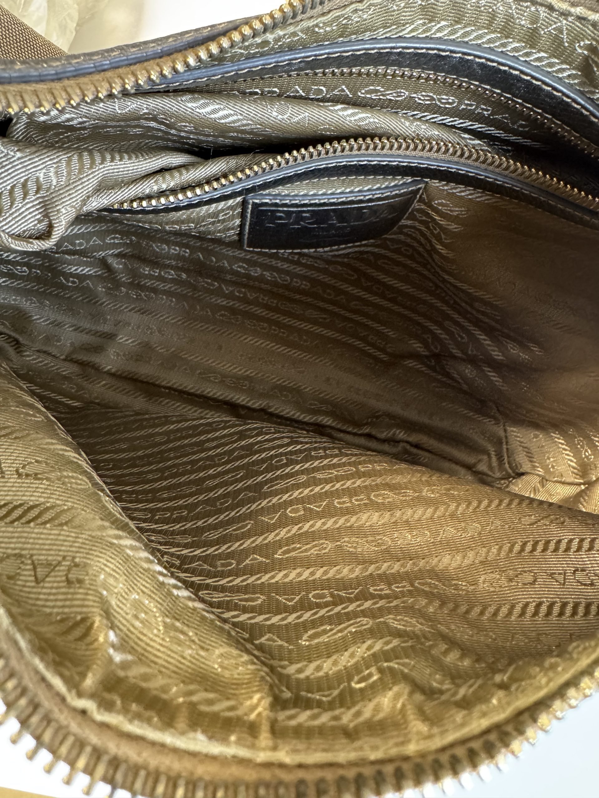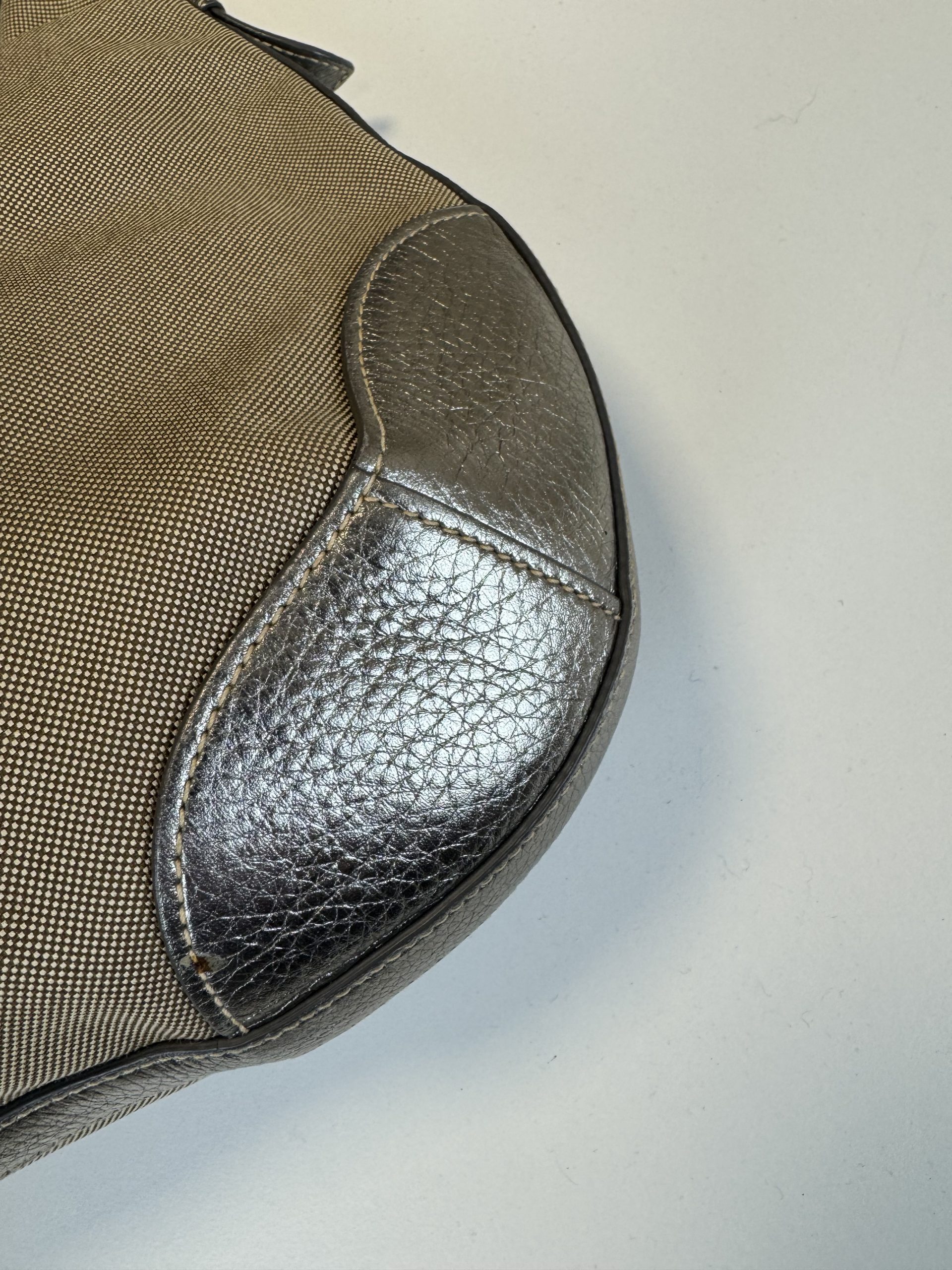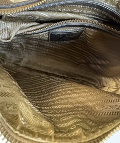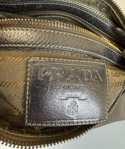 Borsa Prada in Tela Beige e Finiture in Pelle Argentate.