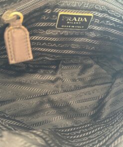 Internamente è foderata con un tessuto siglato Prada e ha una tasca con zip.