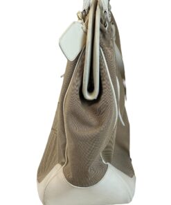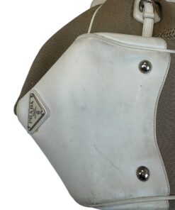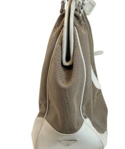 - Corpo in tessuto jacquard beige, con logo Prada stampato sul frontale