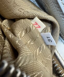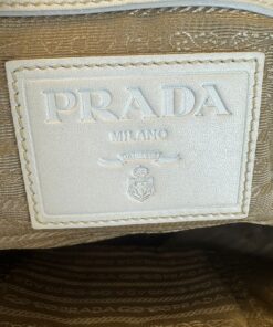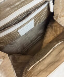 - Interno in tessuto beige firmato Prada cin una tasca piatta e una con cerniera