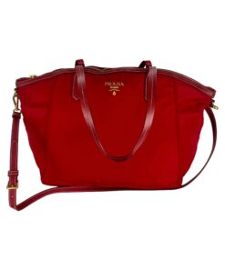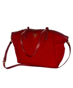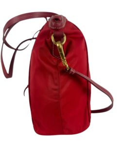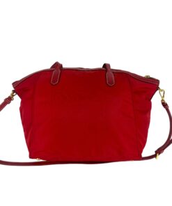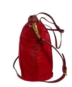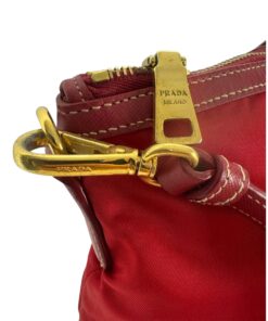 Realizzata in durevole nylon tipico Prada, con dettagli in morbida pelle rossa.
