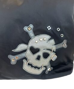 Questo modello Prada Totebag con teschio è una vera e propria dichiarazione di stile. Il nylon nero conferisce resistenza e durata, mentre il motivo del teschio aggiunge un tocco grintoso e originale, rendendola perfetta sia per il giorno che per occasioni informali. Un accessorio che non passerà inosservato e che rappresenta una scelta di grande personalità.