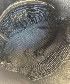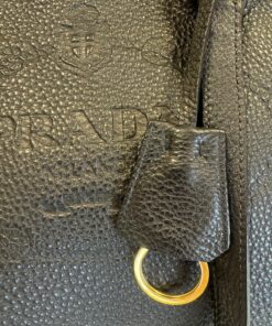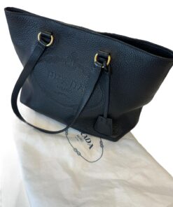 Bellissima Borsa Prada Vitello Embassed Logo Daino Nera, da portare a spalla tramite i doppi manici in pelle.