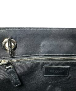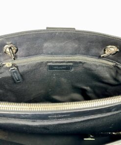 - Open top. Chiusura tramite pattina e bottone a pressione decorato con logo YSL Cassandre argentato