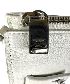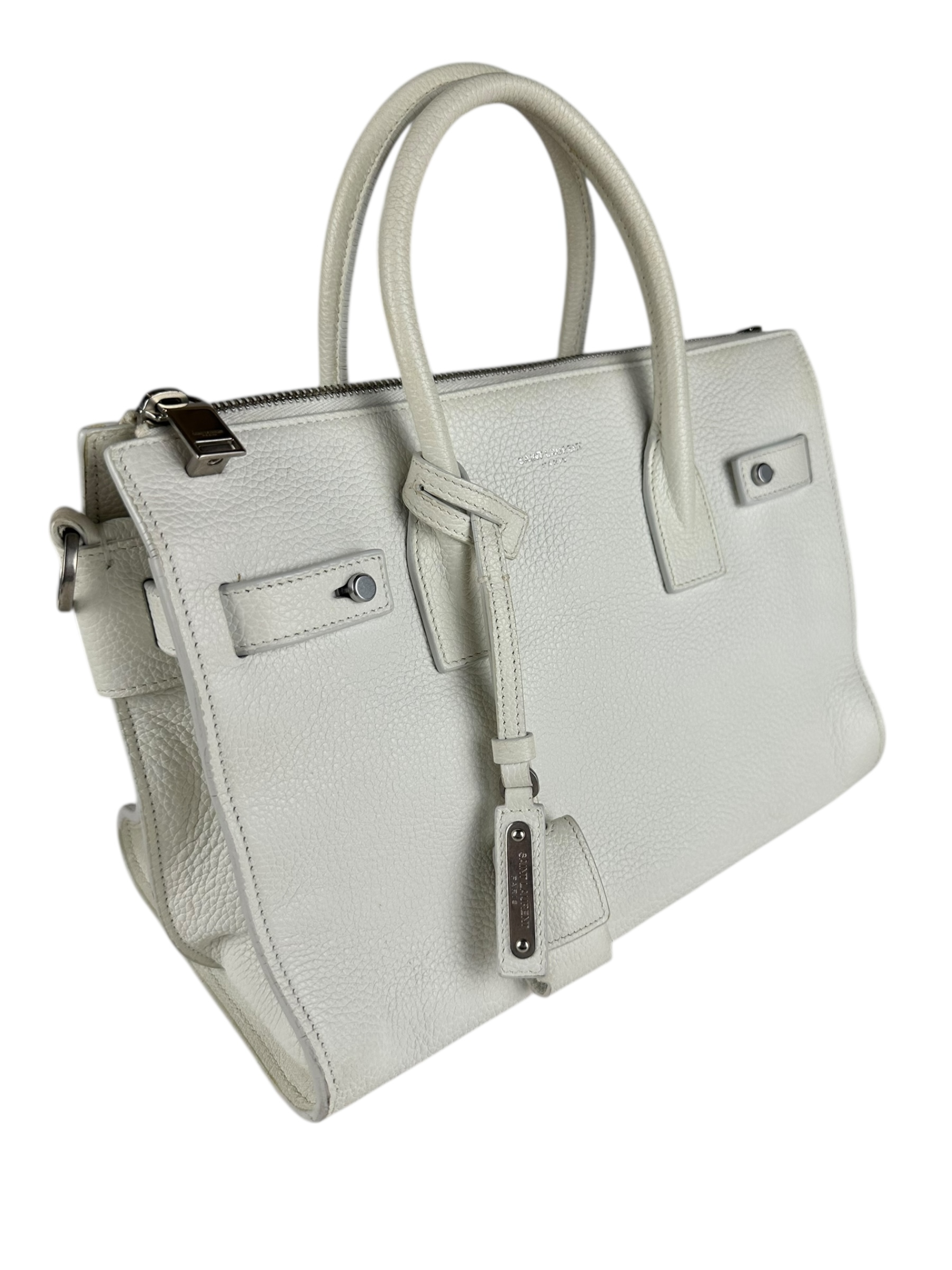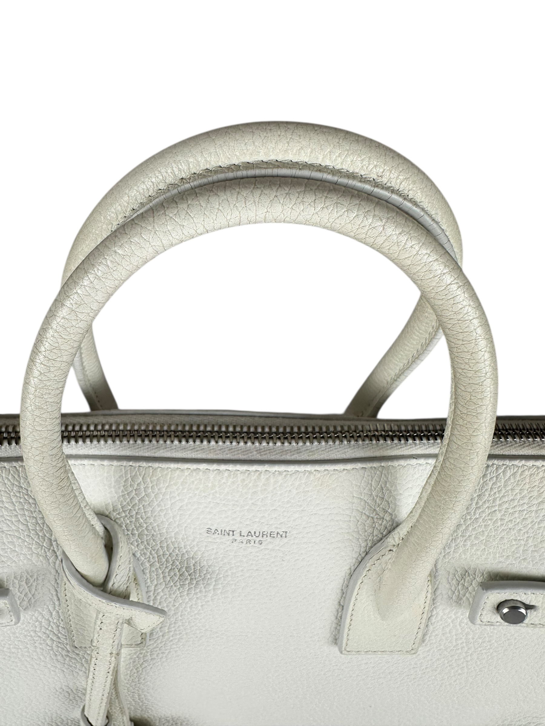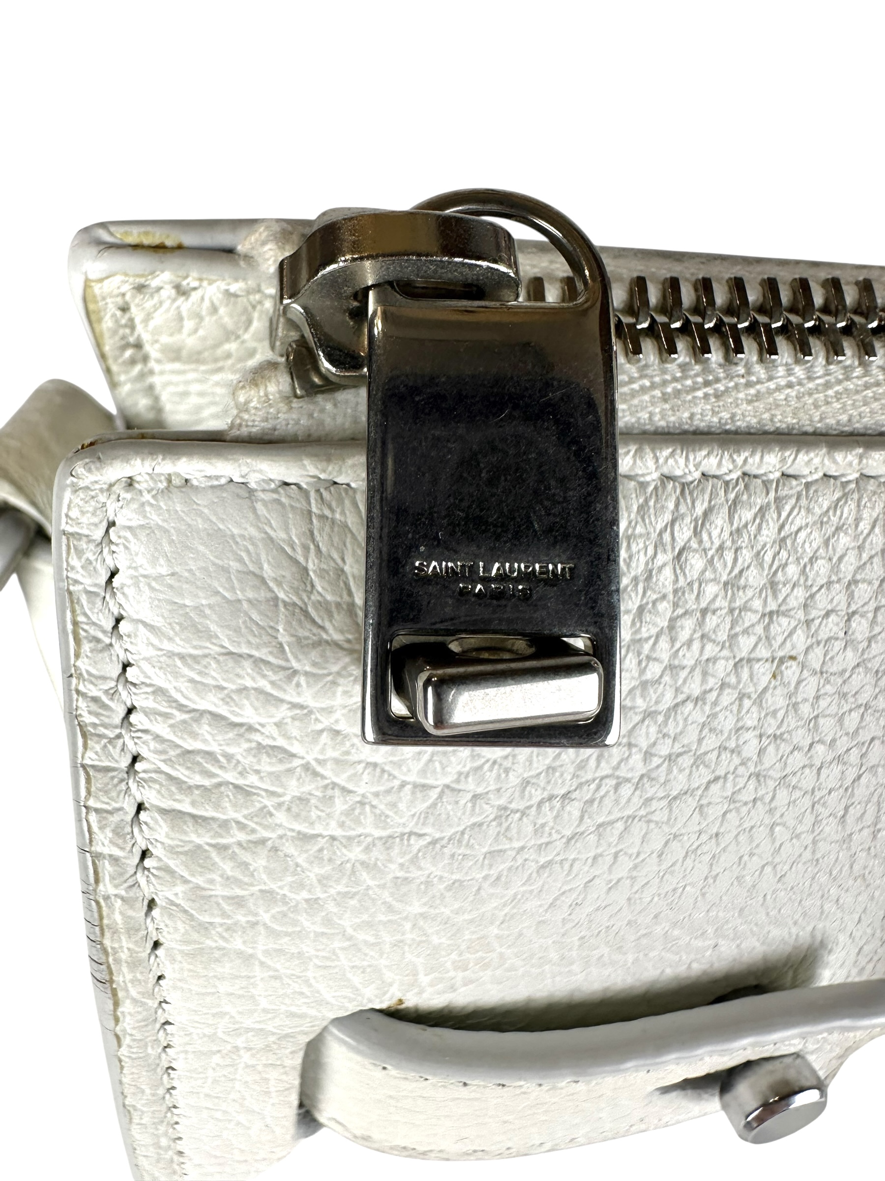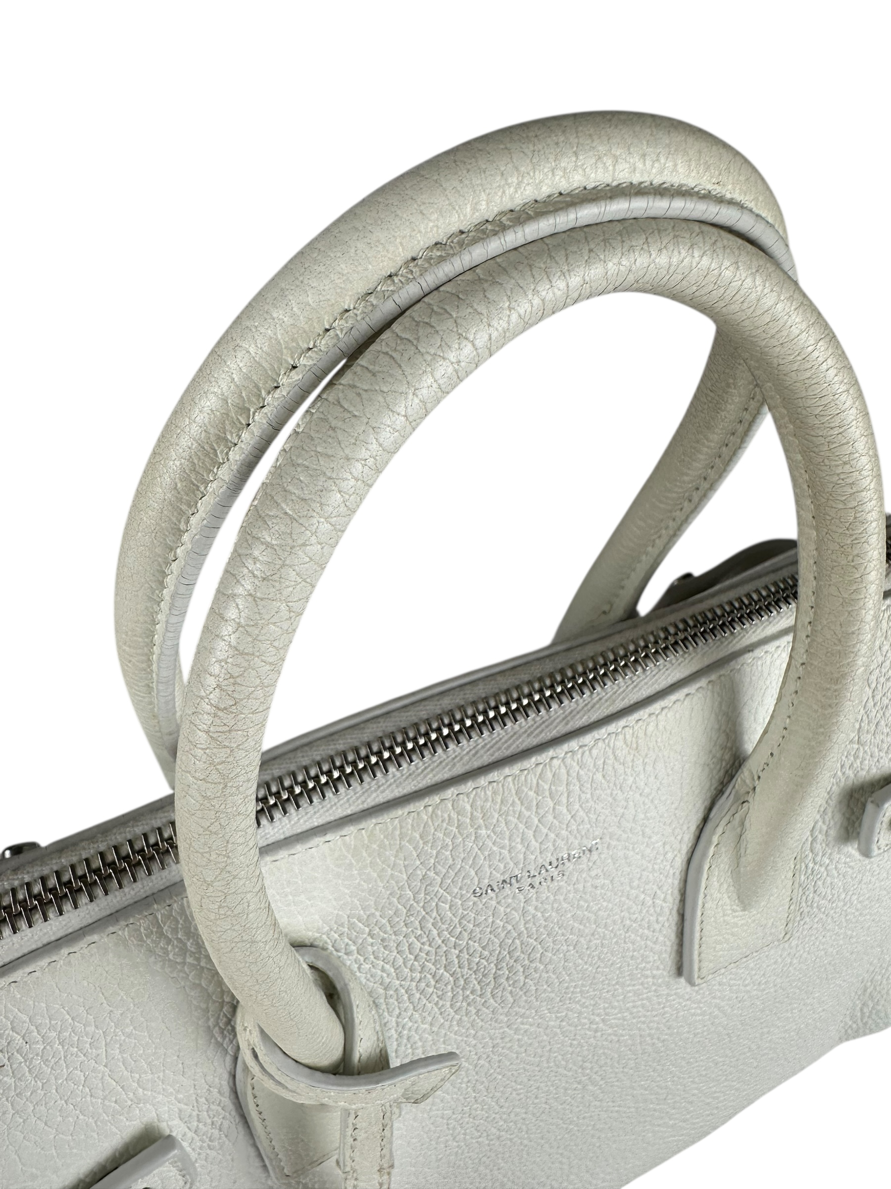 Borsa Saint Laurent Sac De Jour Baby in Pelle Martellata Bianca.
