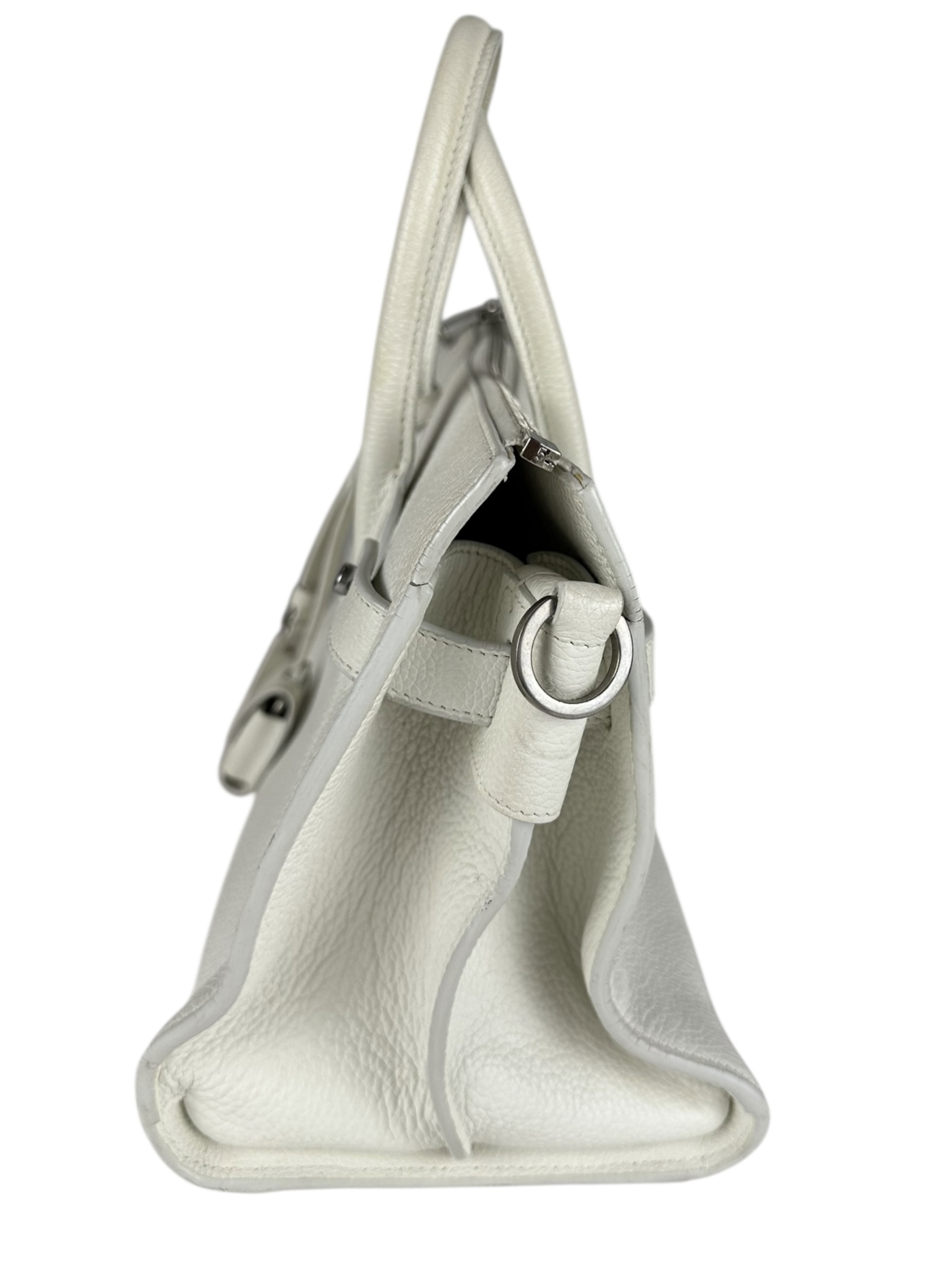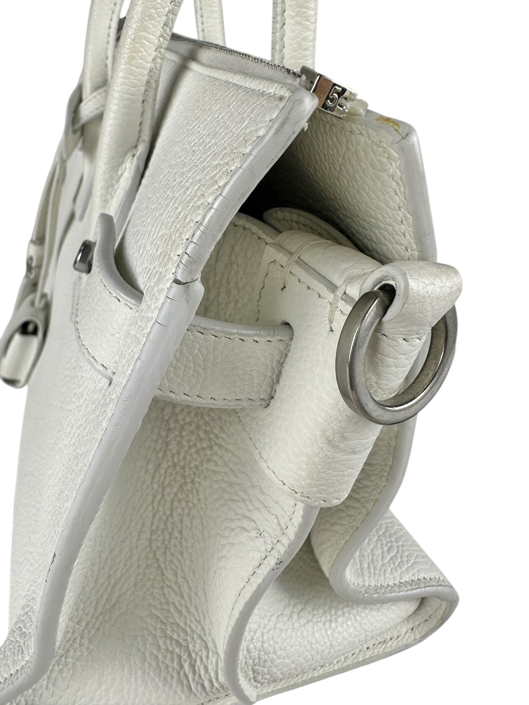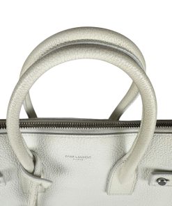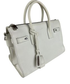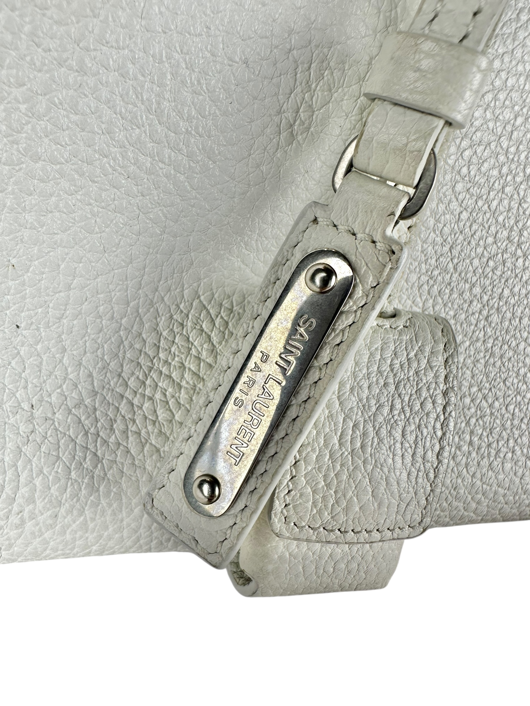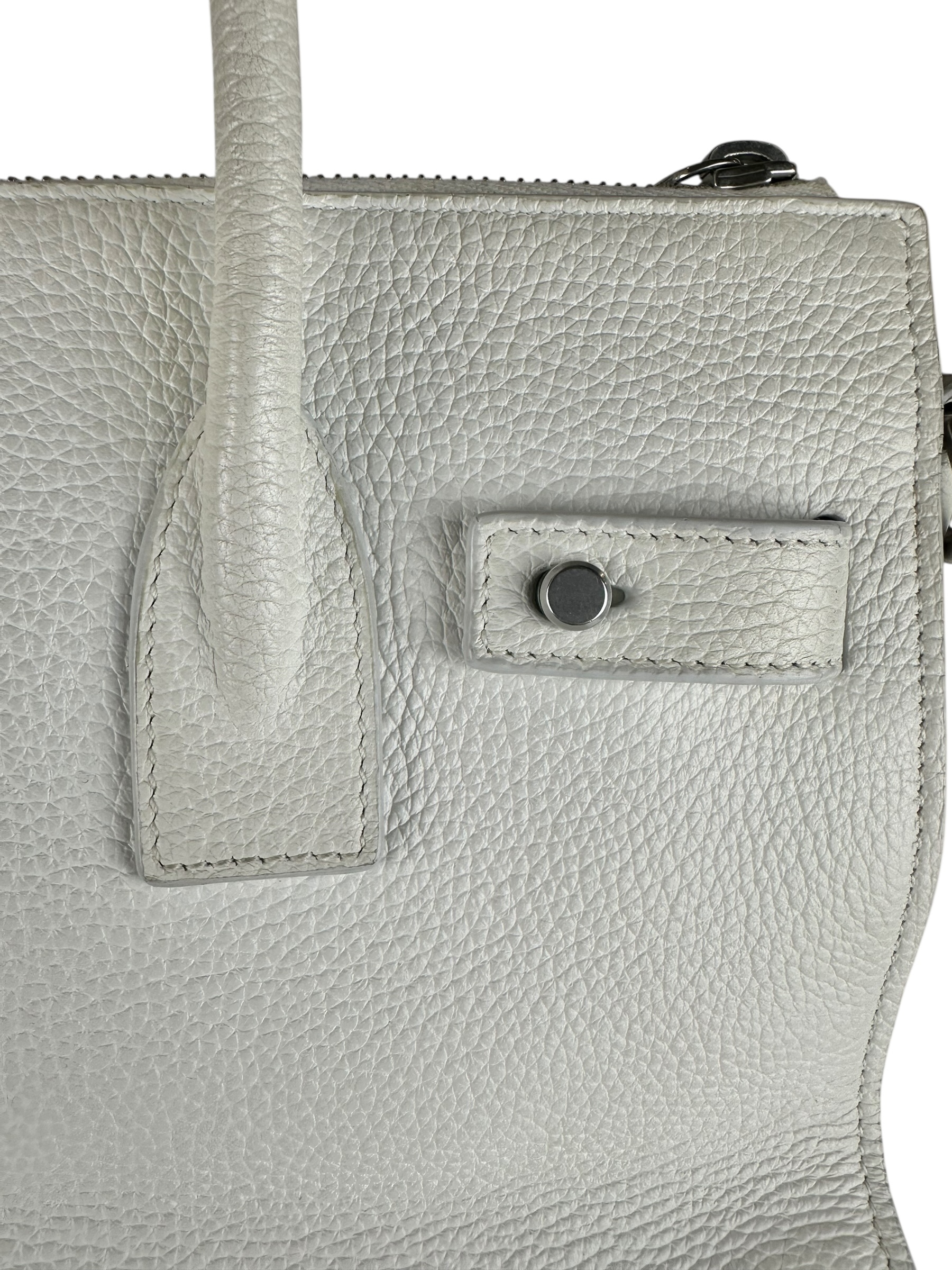 Borsa Saint Laurent Sac De Jour Baby in Pelle Martellata Bianca.