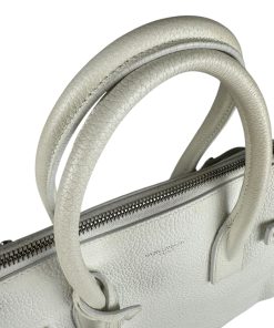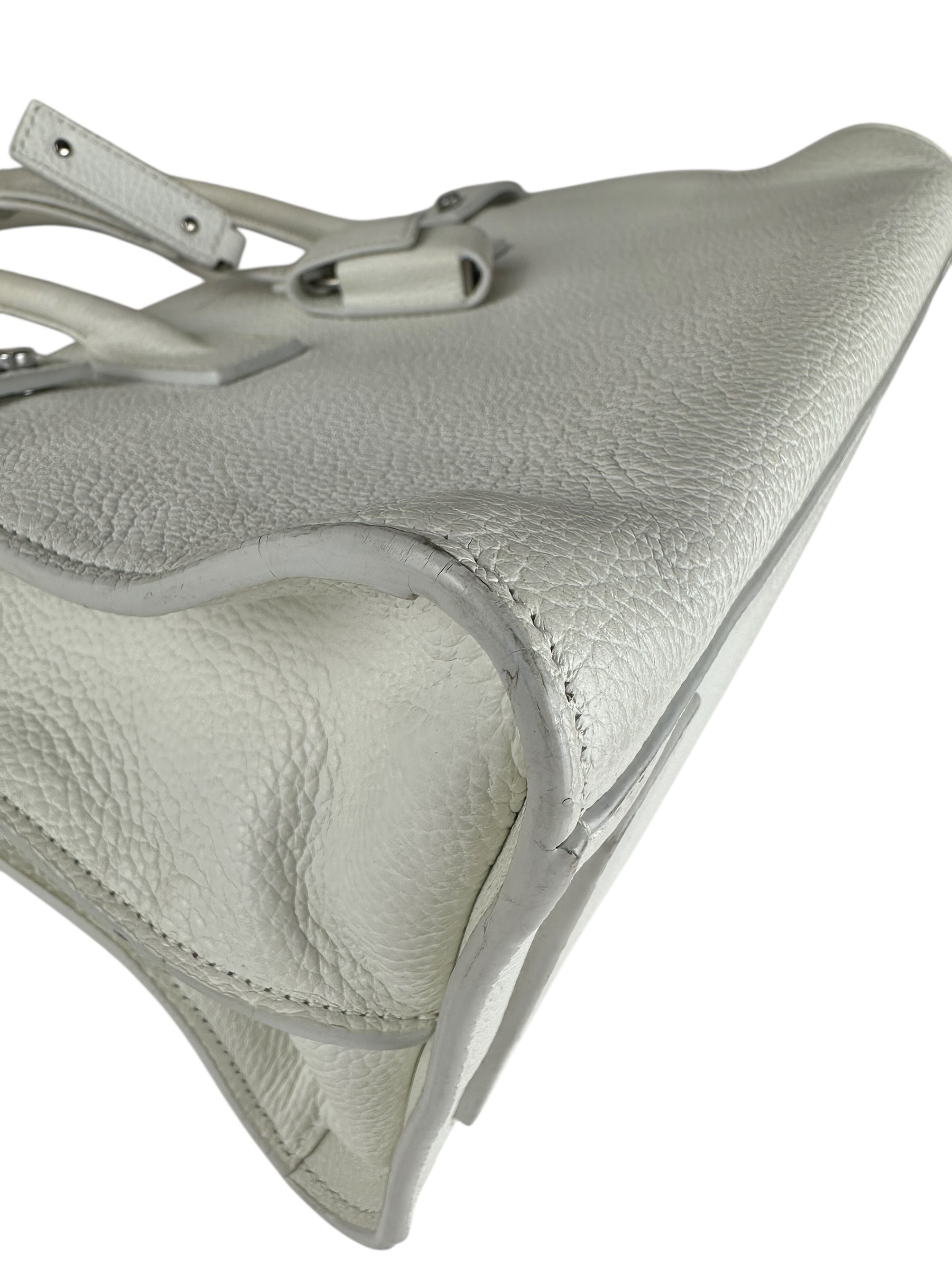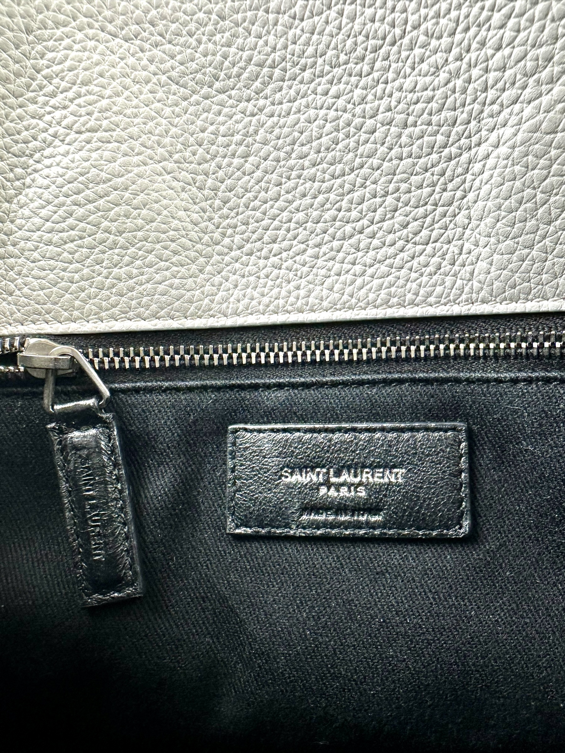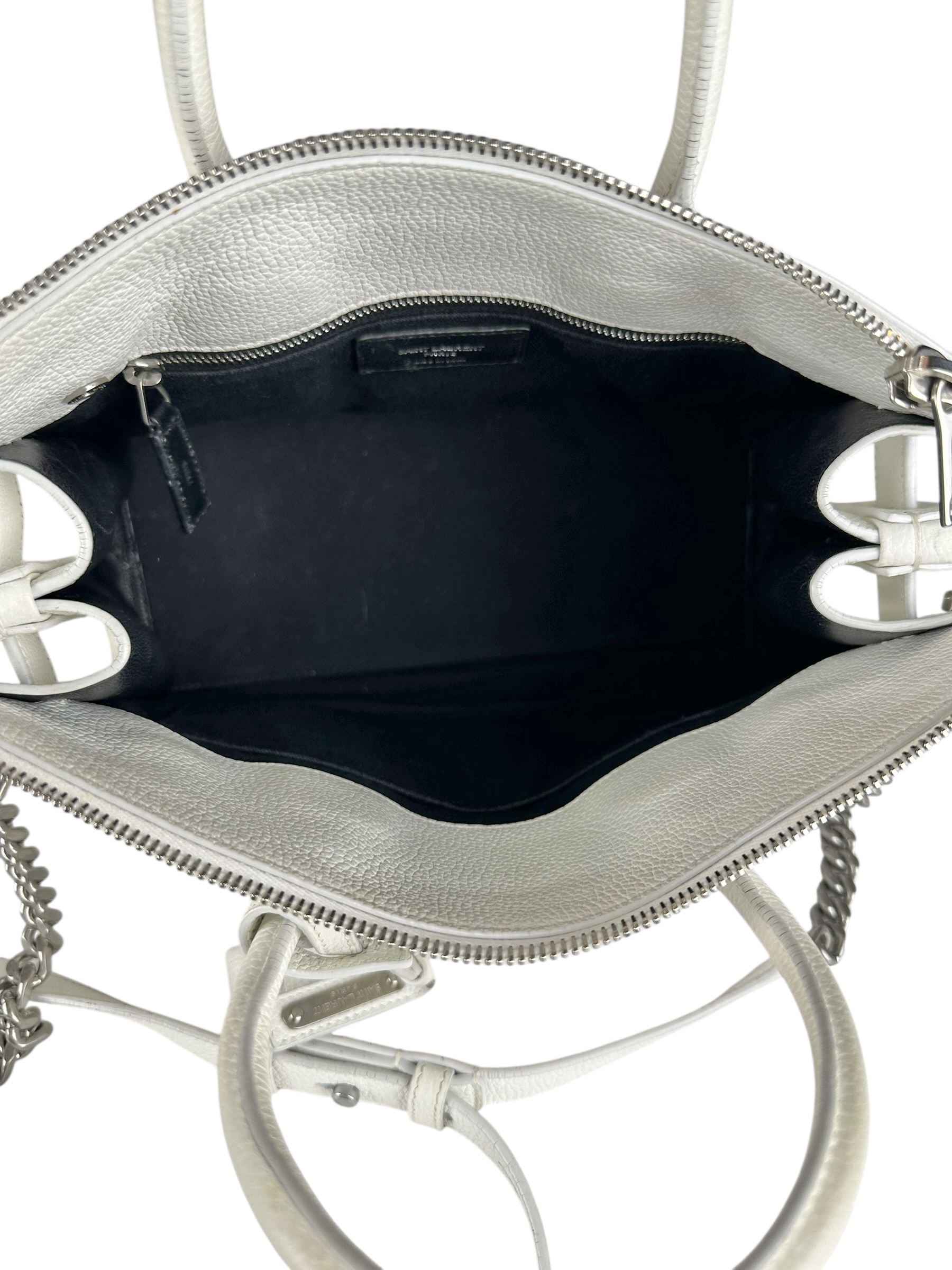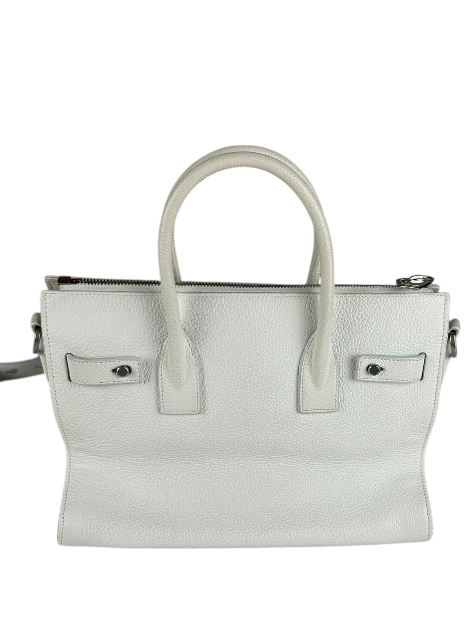 Borsa Saint Laurent Sac De Jour Baby in Pelle Martellata Bianca.
