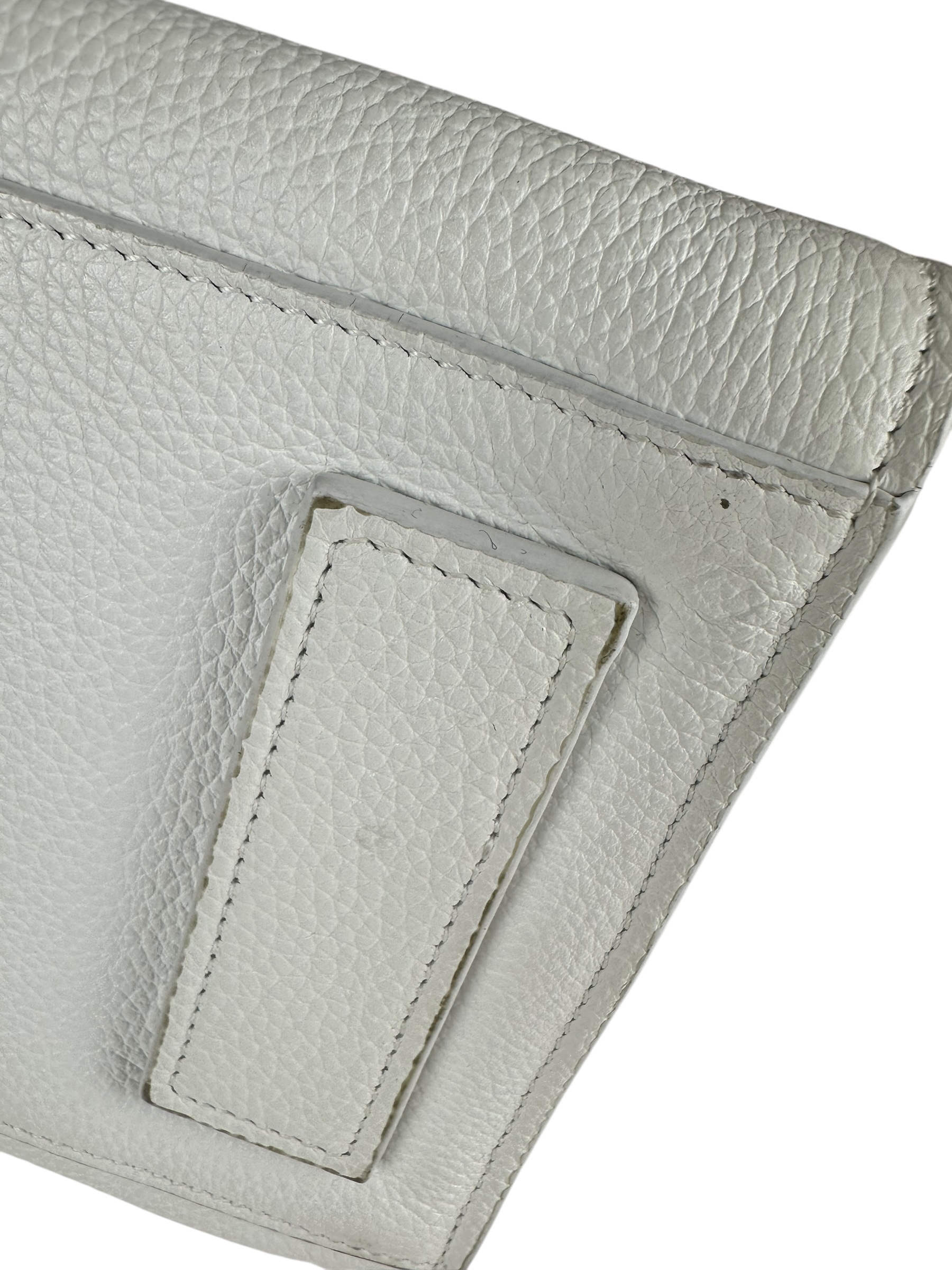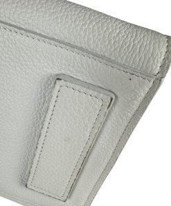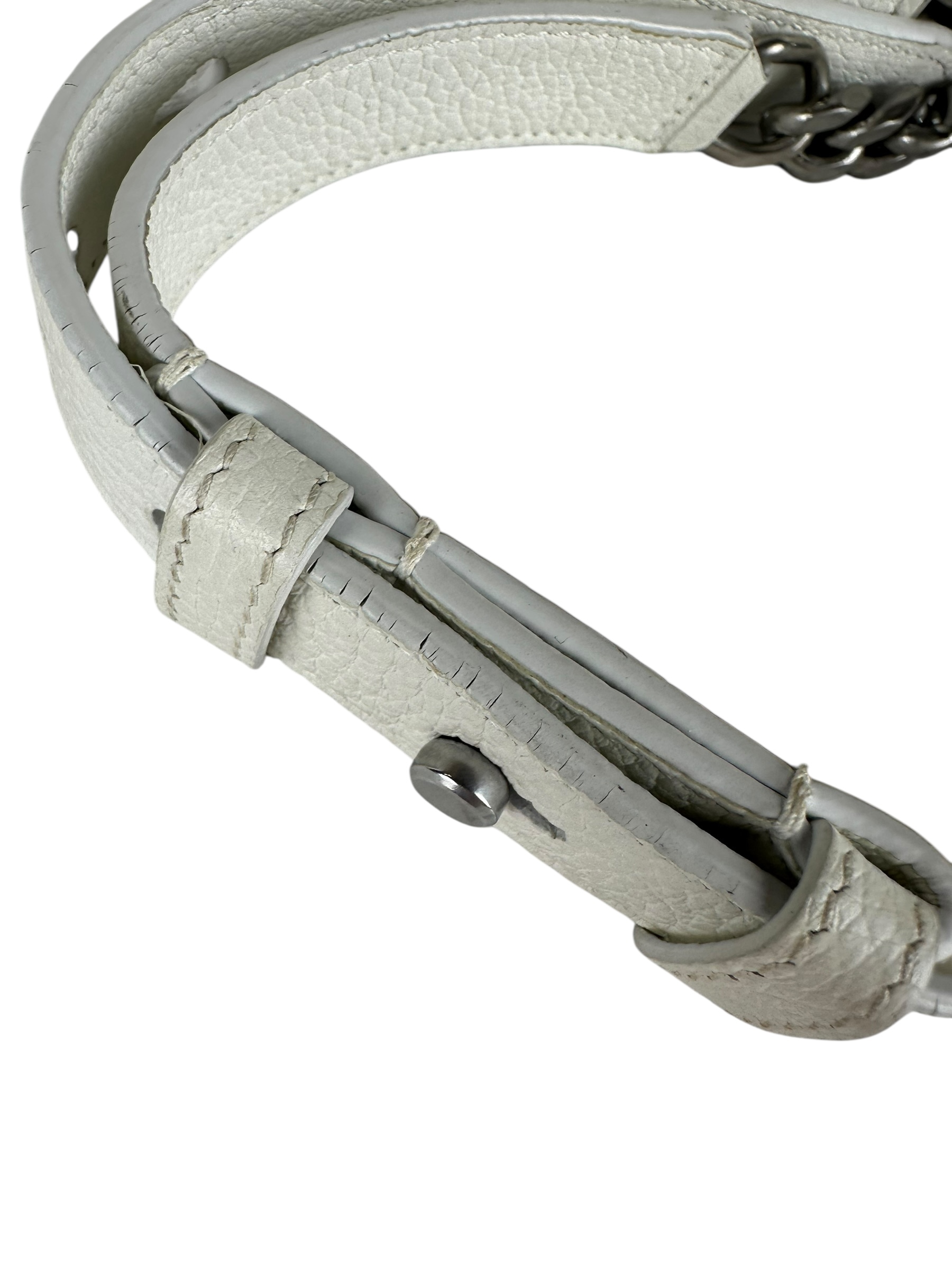 - Tracolla removibile e regolabile, realizzata in pelle bianca con laterali a catena