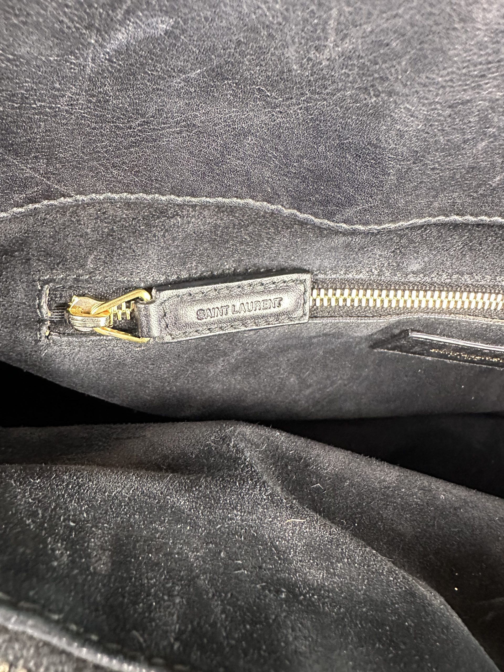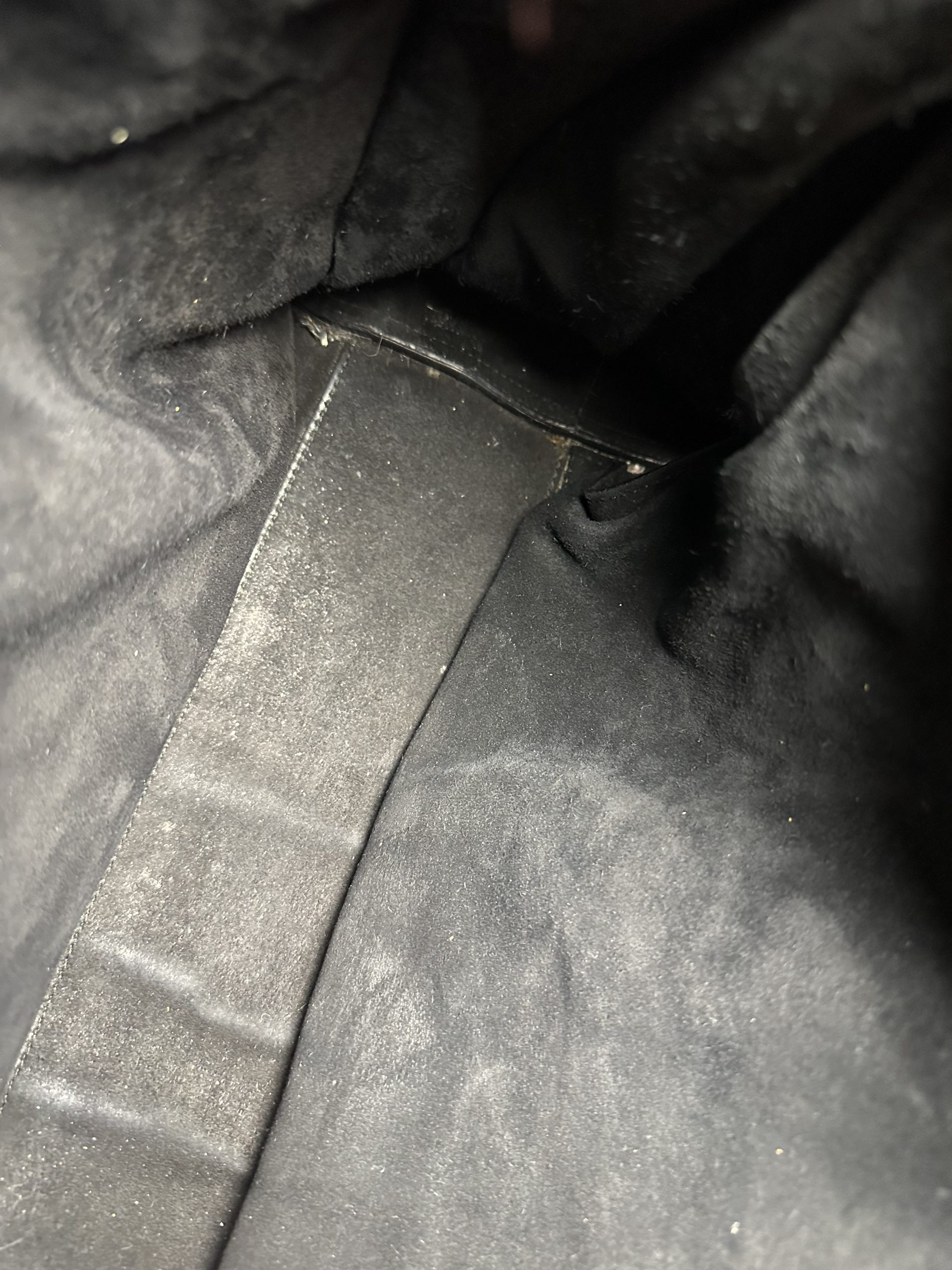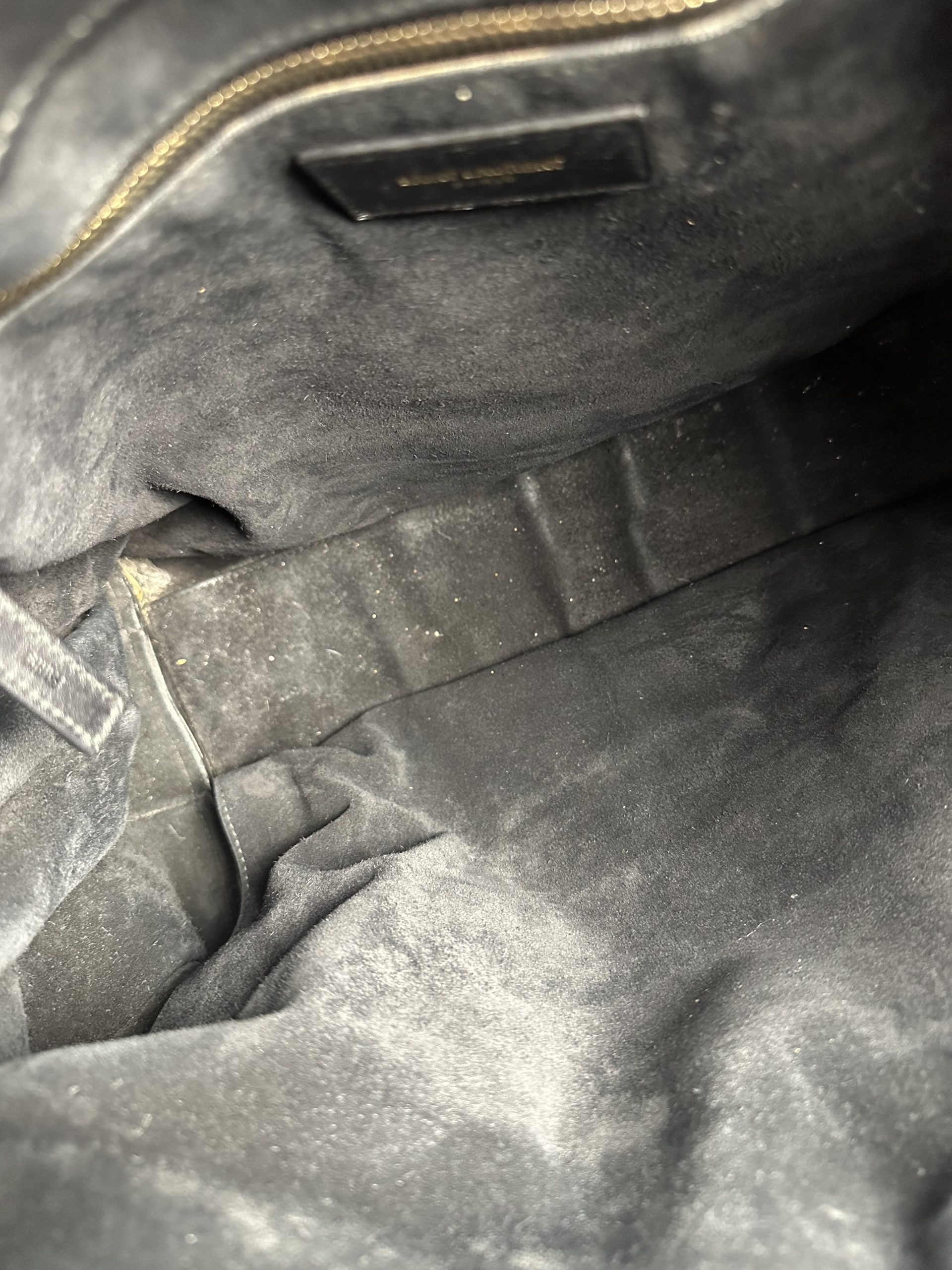 - Interno in suede, composto da due vani laterali aperti e un vano centrale con cerniera