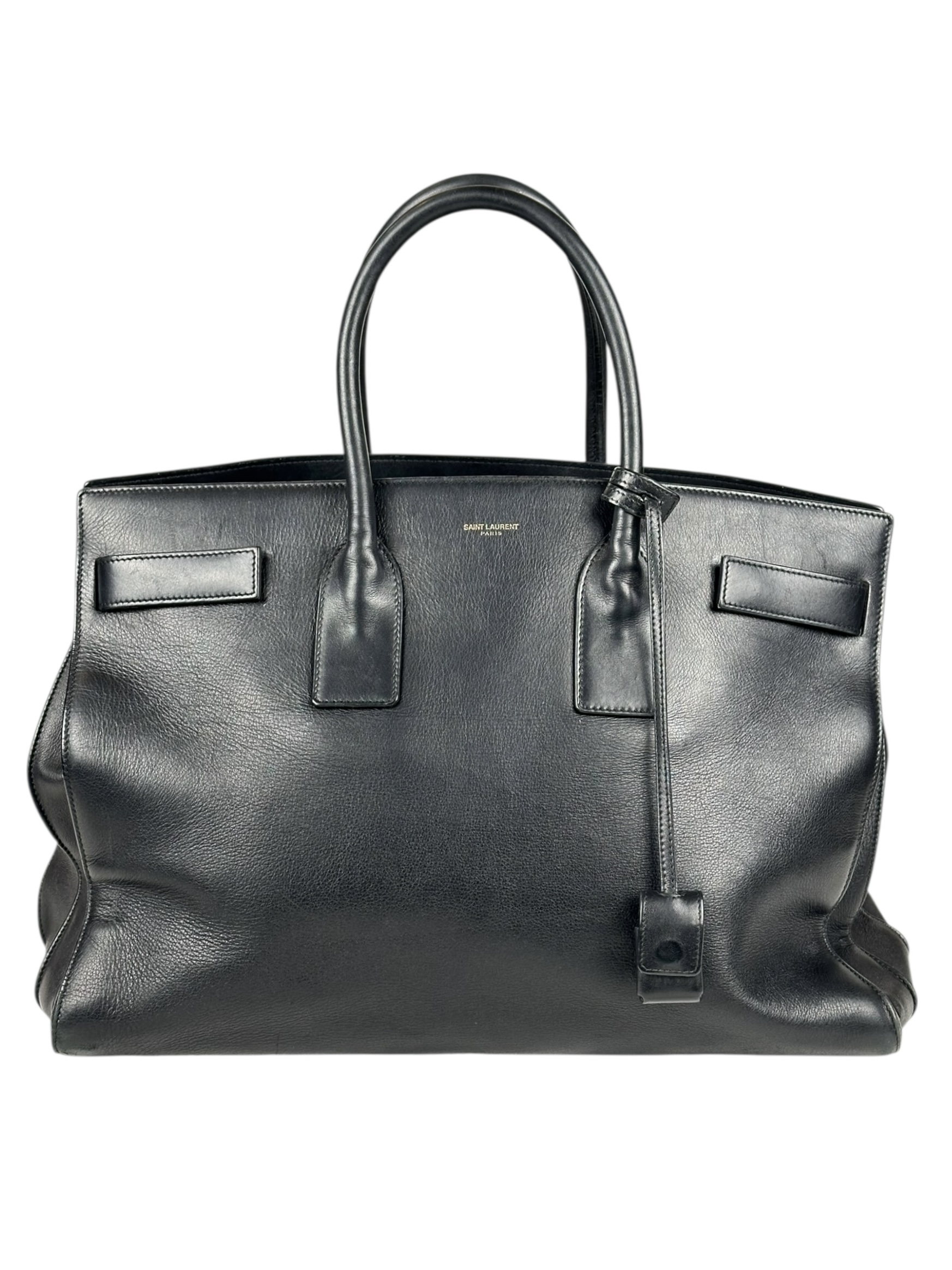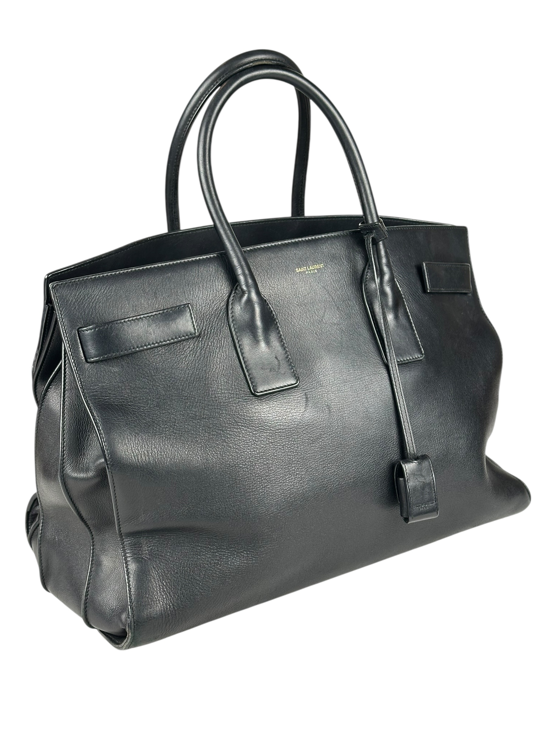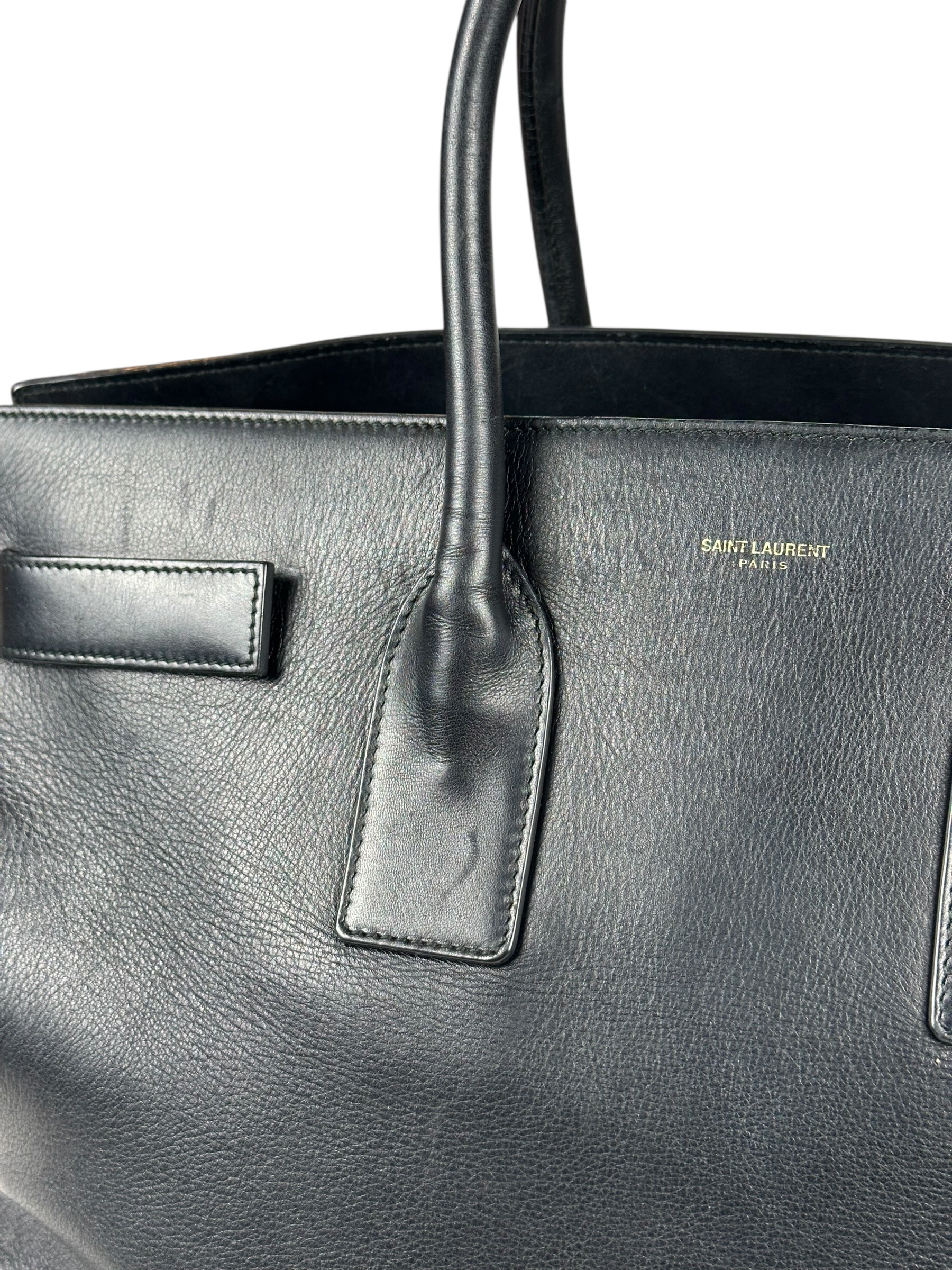 Borsa Saint Laurent Sac De Jour in Pelle Liscia Nera Dettagli Ottone