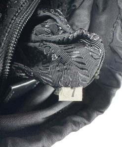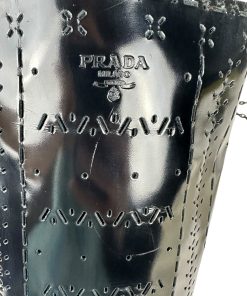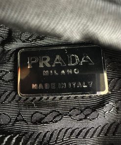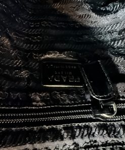 - Interno a vano unico, foderato con tessuto Prada nero loggato