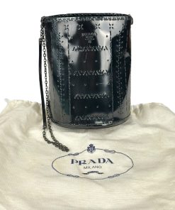 Borsa Secchiello Prada in Pelle Verniciata Nera, delizioso ed originale modello perfetto per gli amanti del vintage.