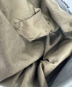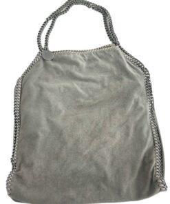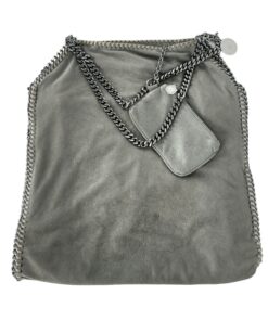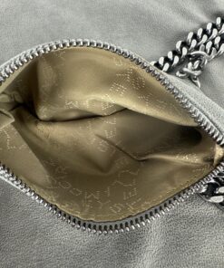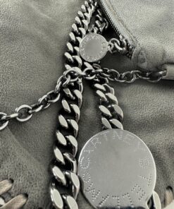 Iconica Borsa Stella Mc Cartney Falabella, grigia con portamonete, oggetto di grande bellezza artigianale ma anche di profondo significato etico ed ecologico.