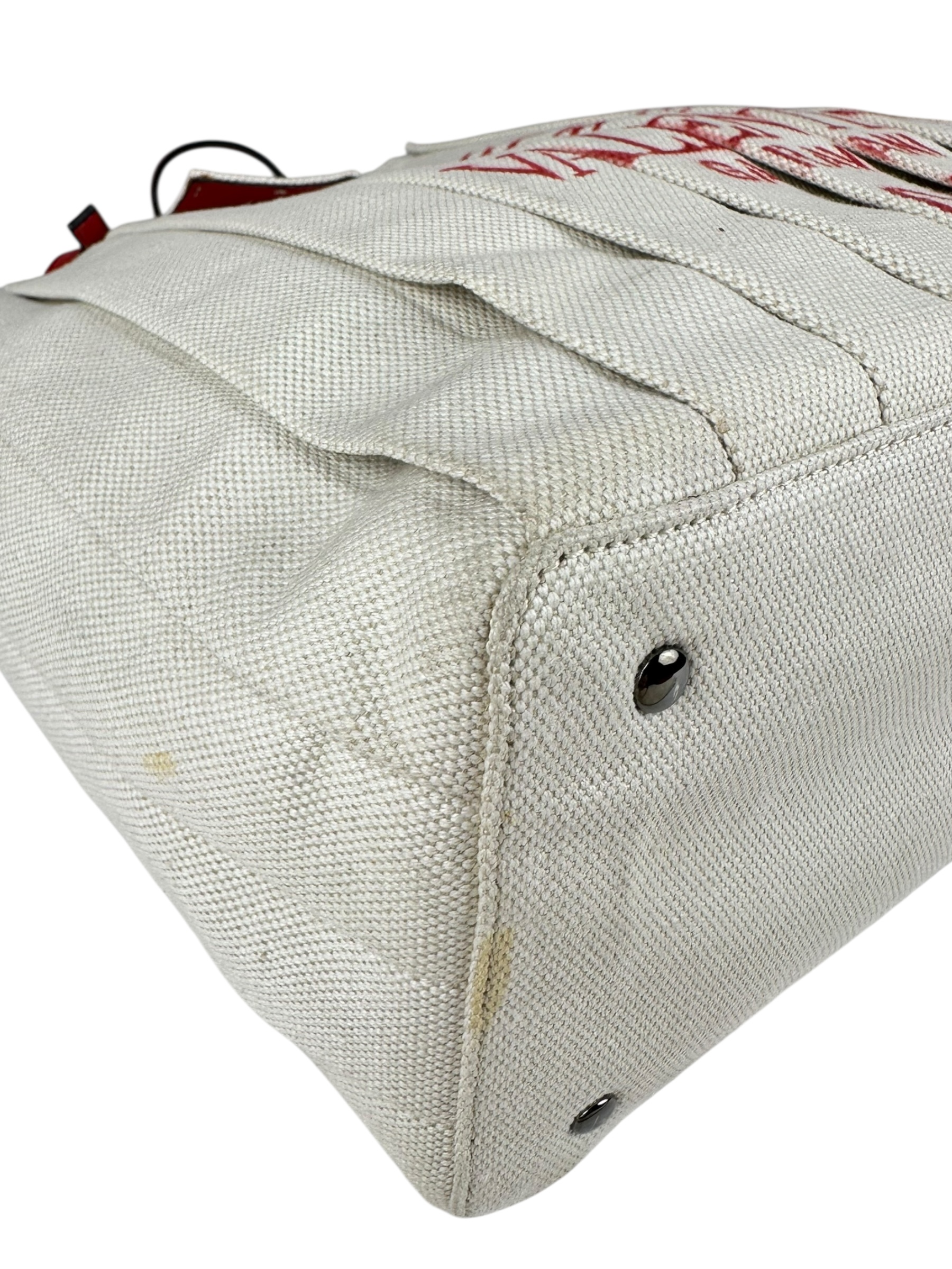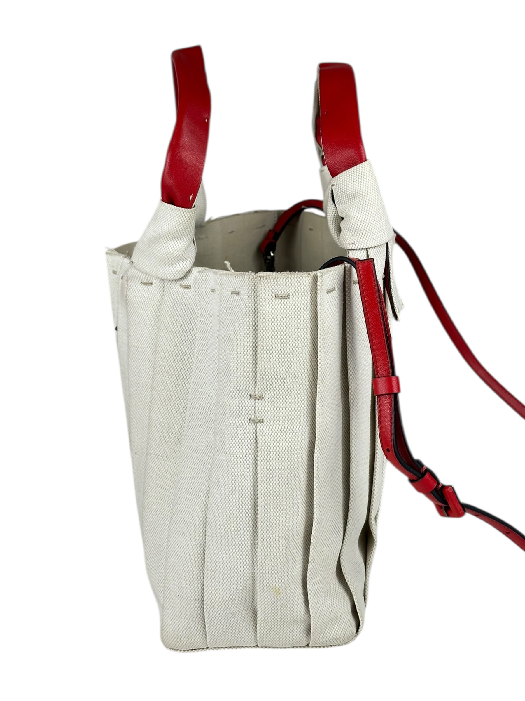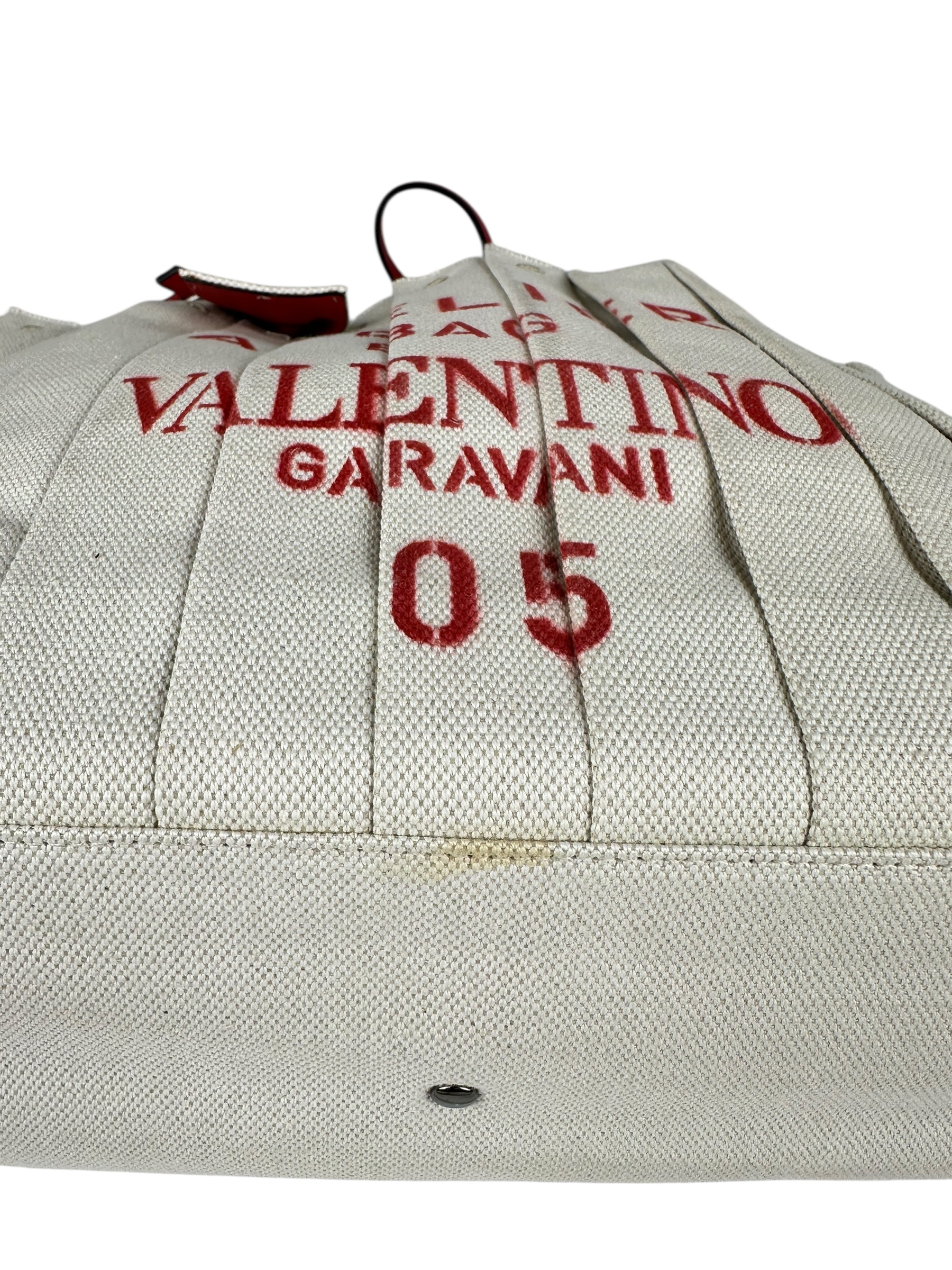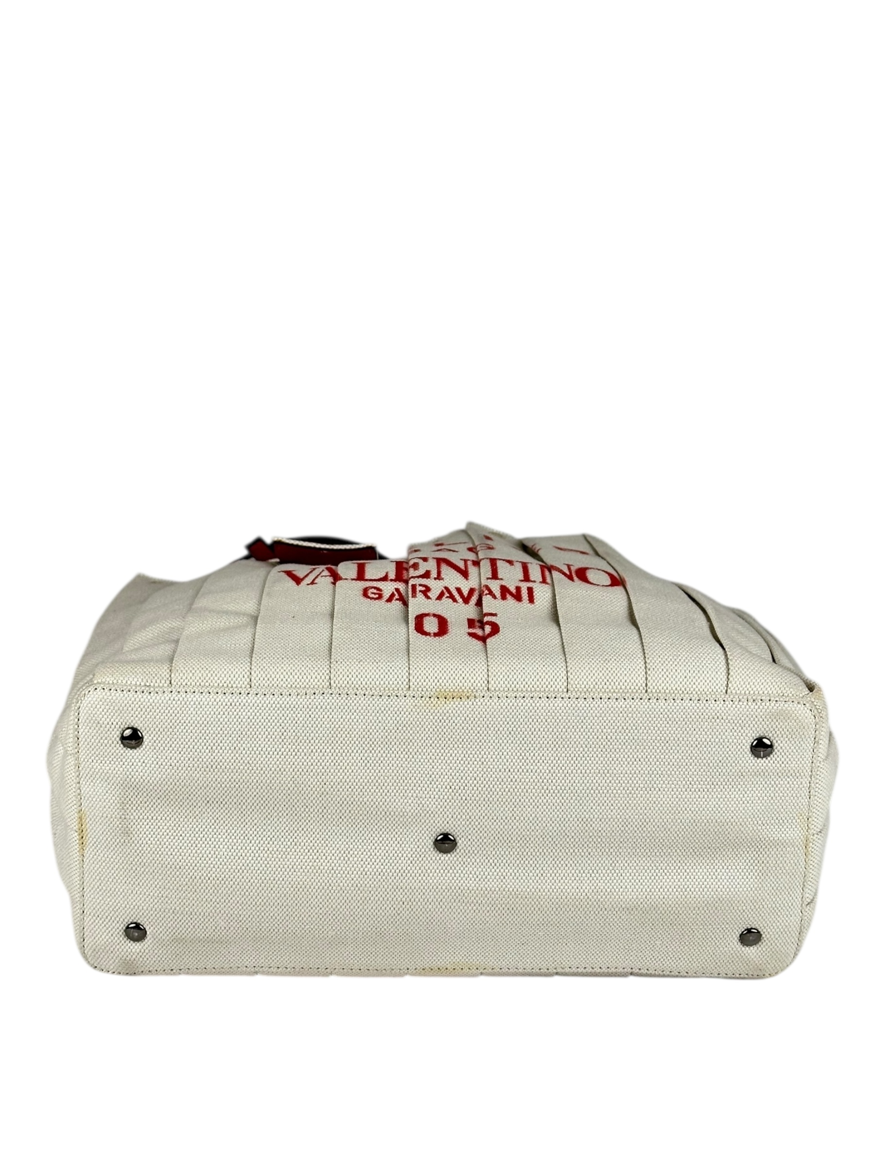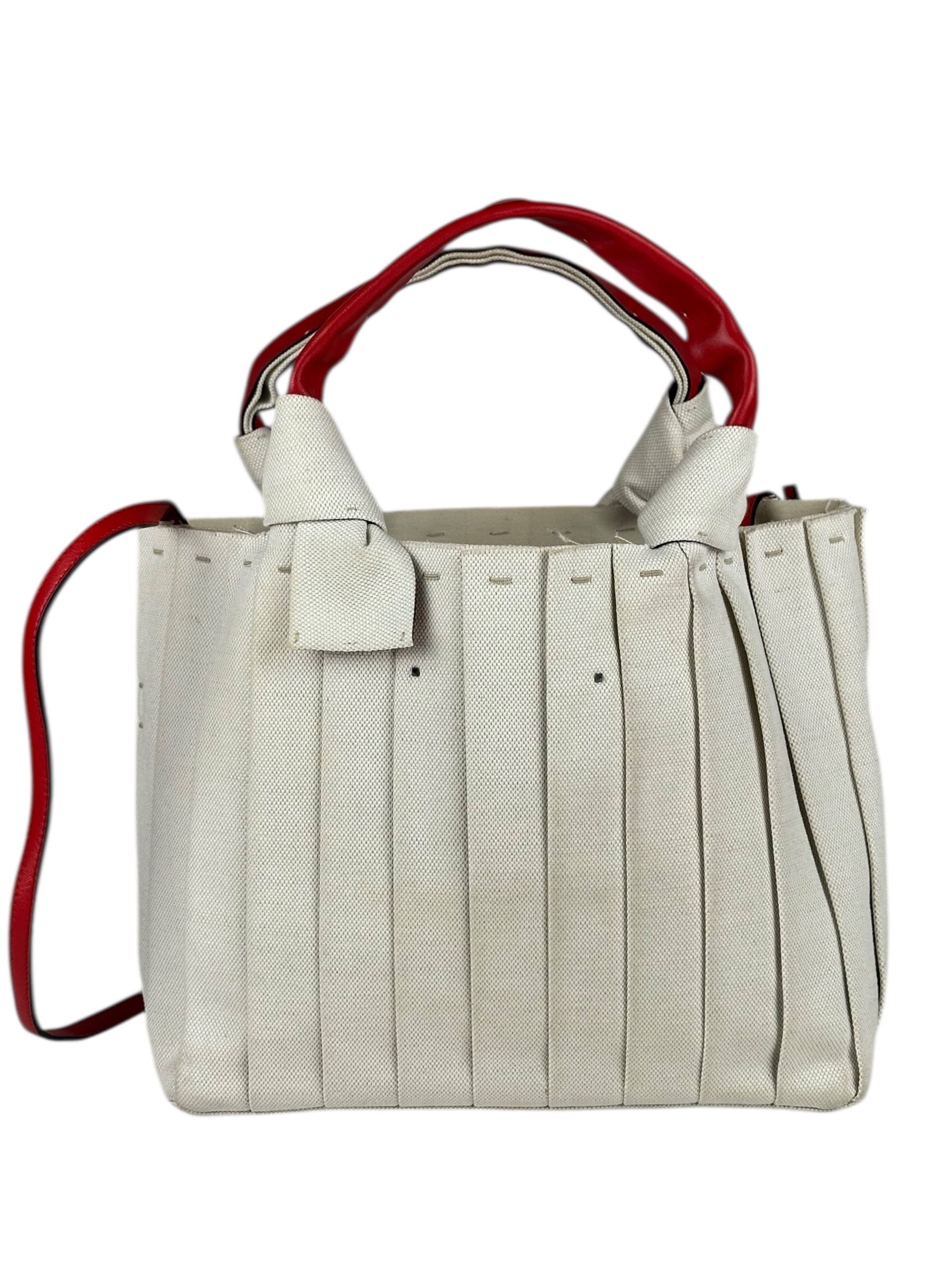 Borsa Valentino Garavani Tote Atelier Bag 05 in Tessuto Bianca e Rossa, accessoriata con pochette in morbida pelle rossa, utilizzabile anche da sola.