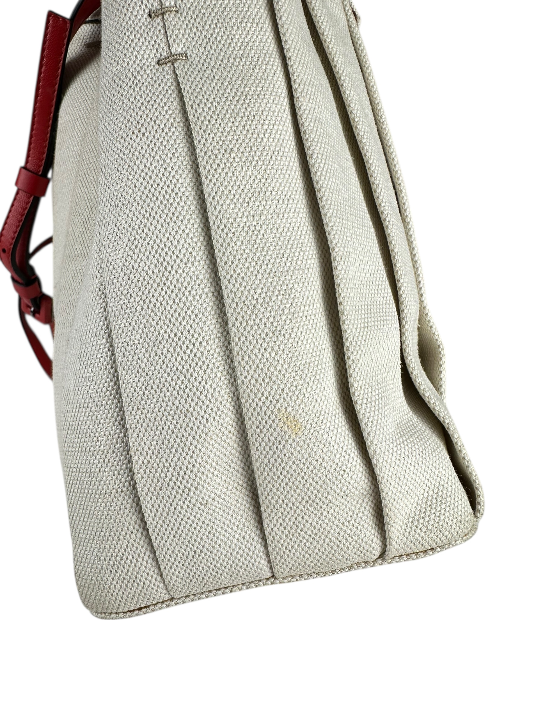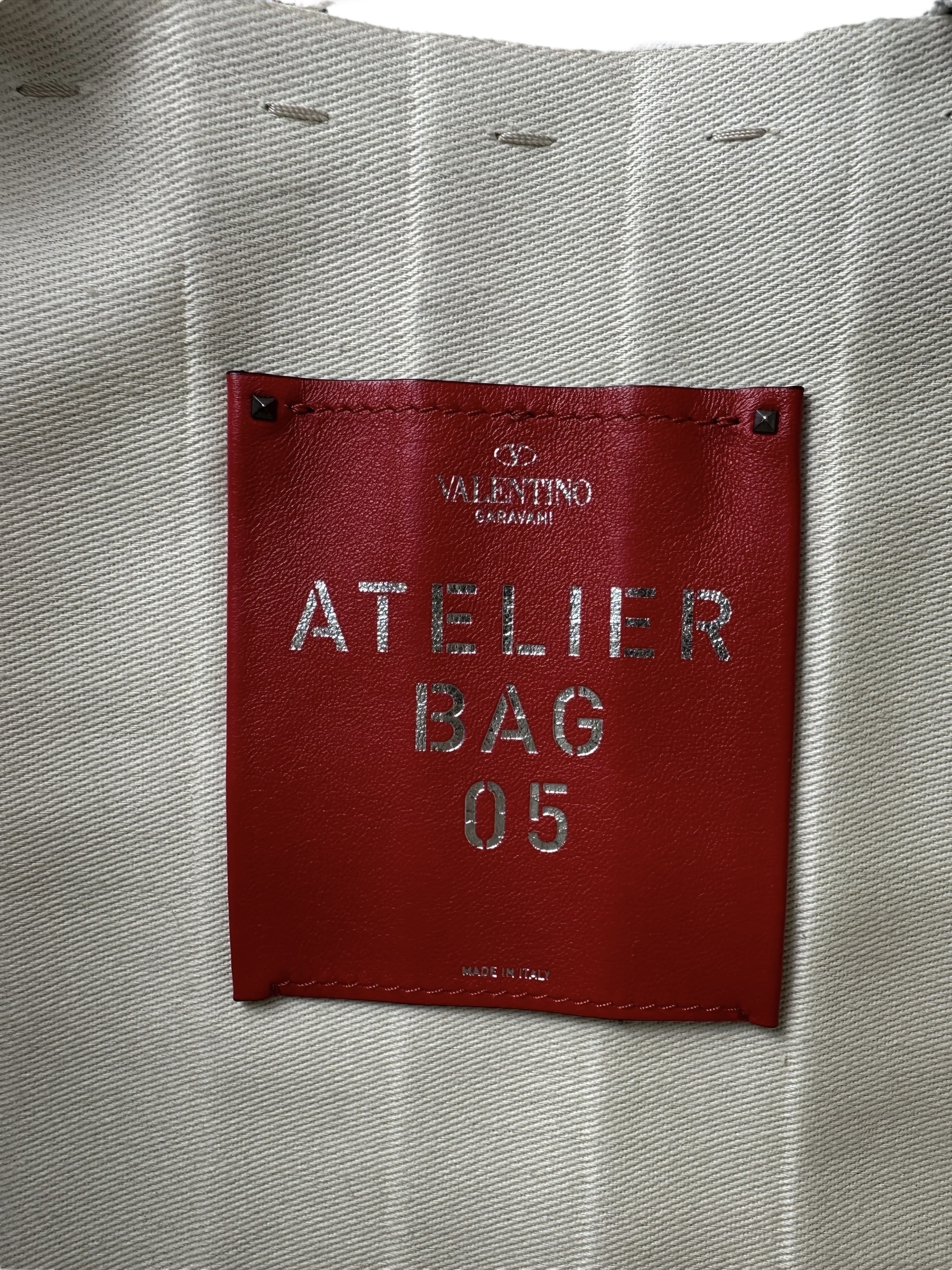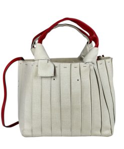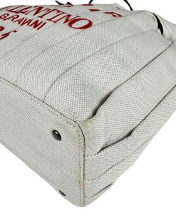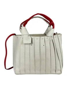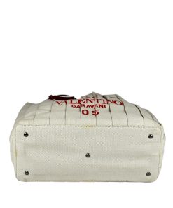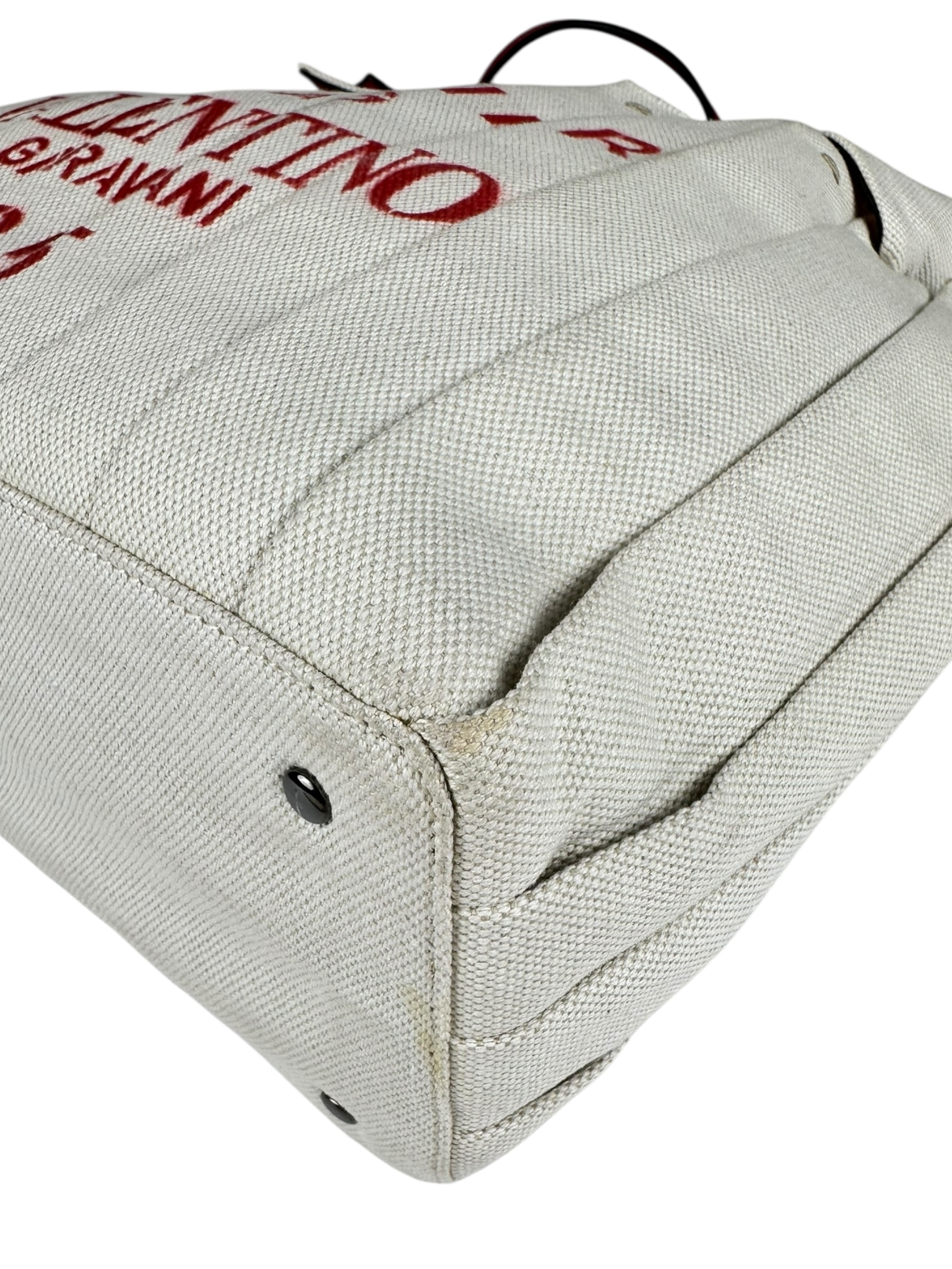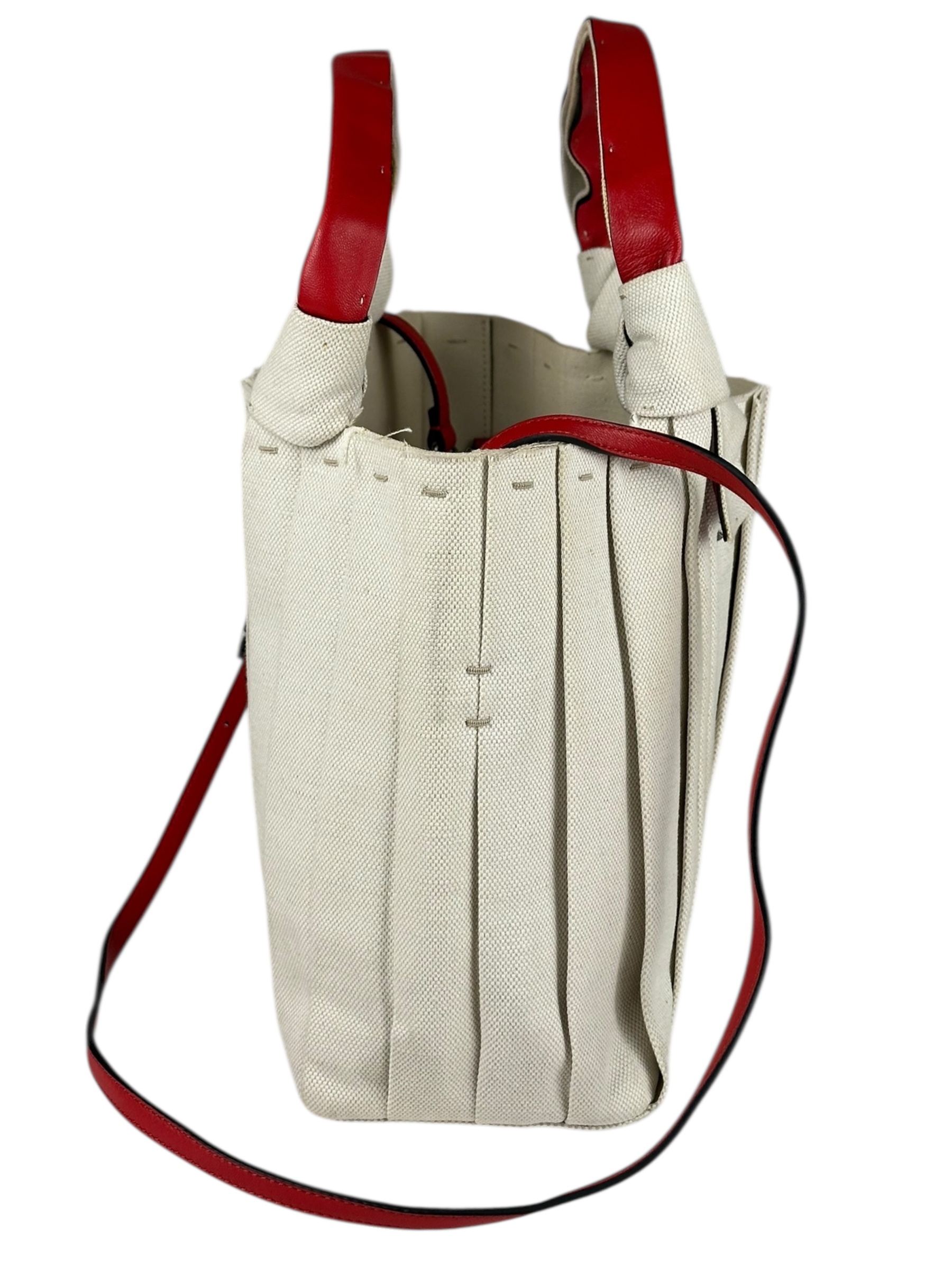Borsa Valentino Garavani Tote Atelier Bag 05 in Tessuto Bianca e Rossa, accessoriata con pochette in morbida pelle rossa, utilizzabile anche da sola.