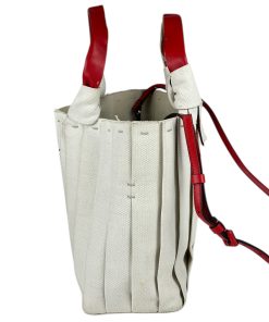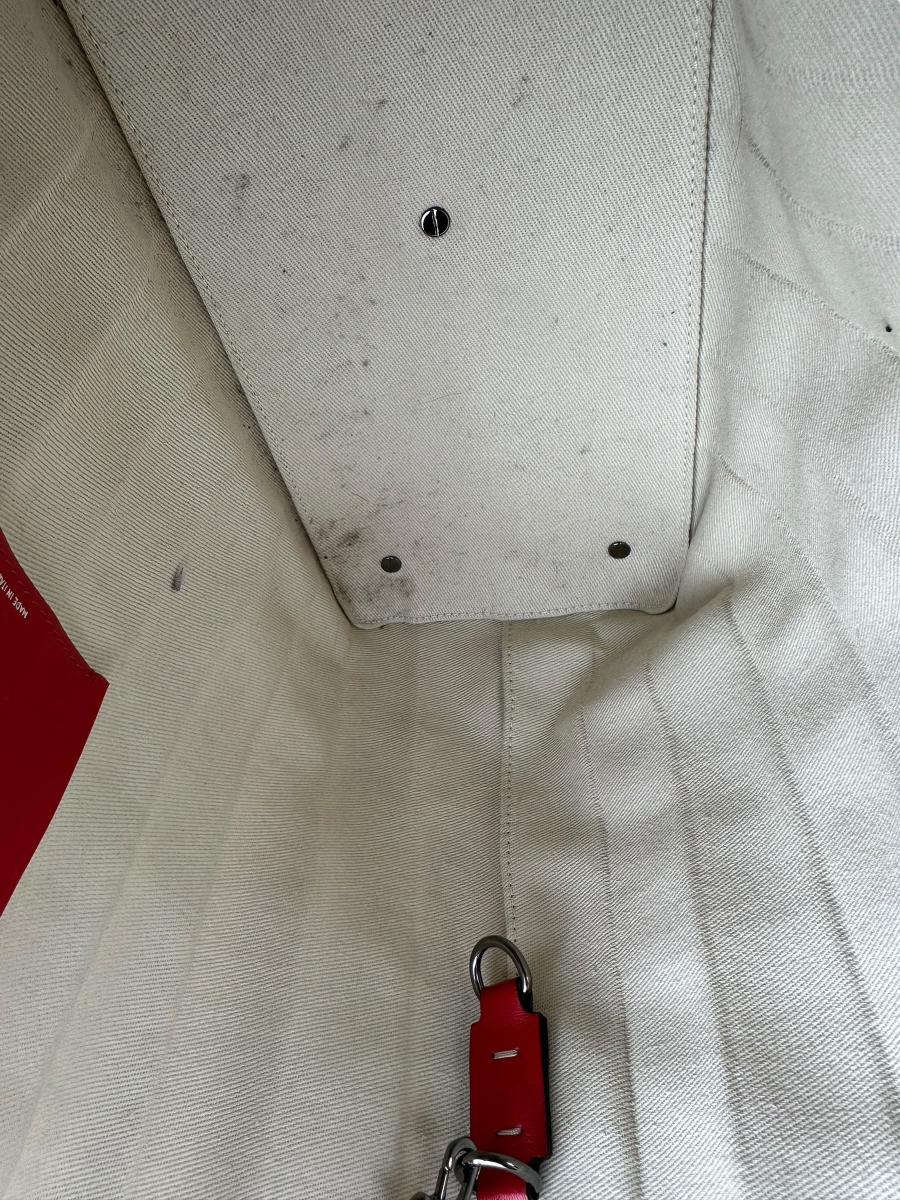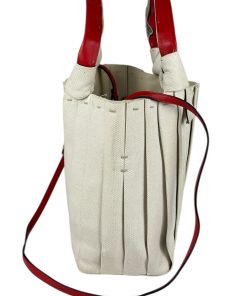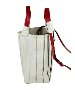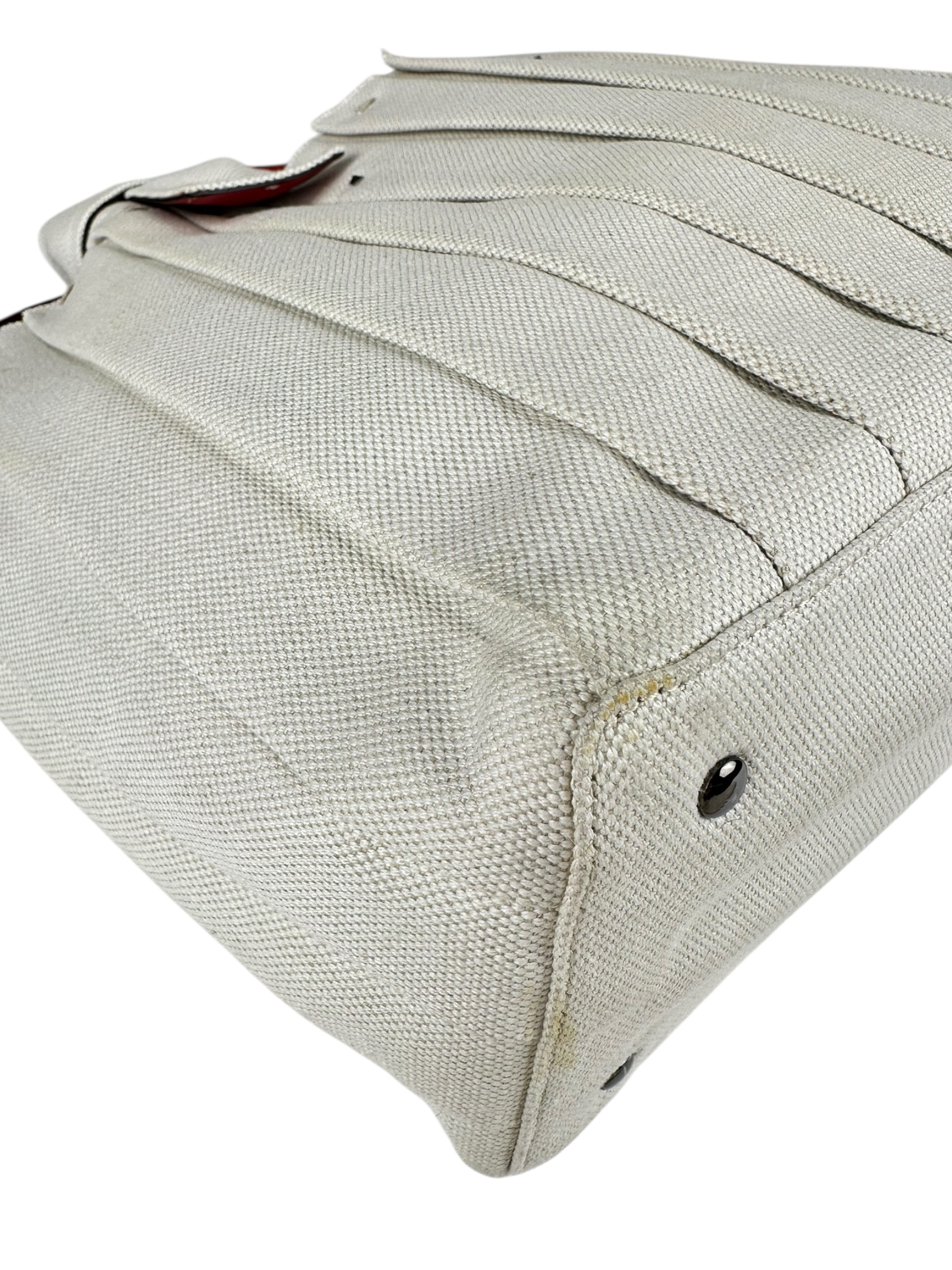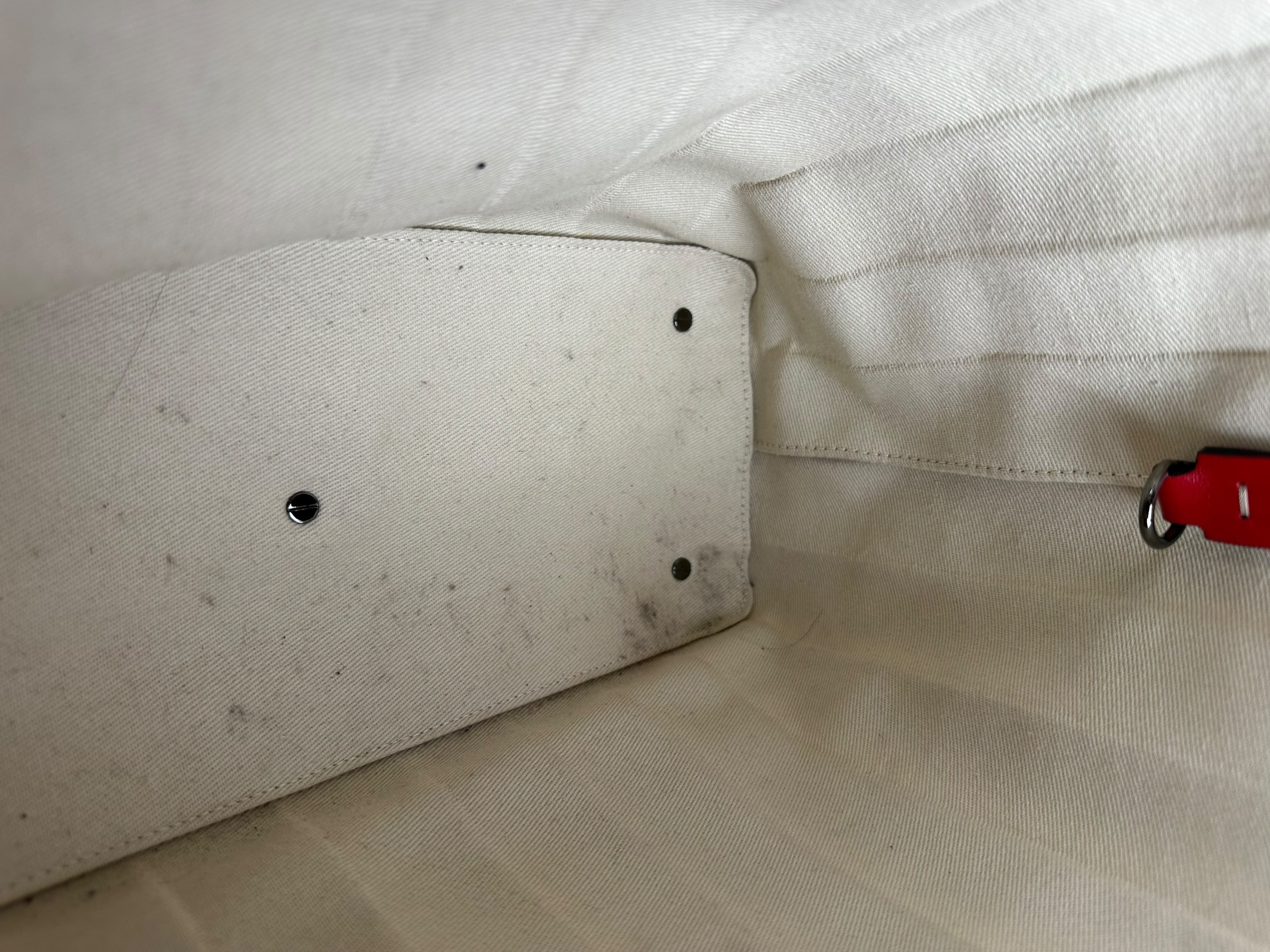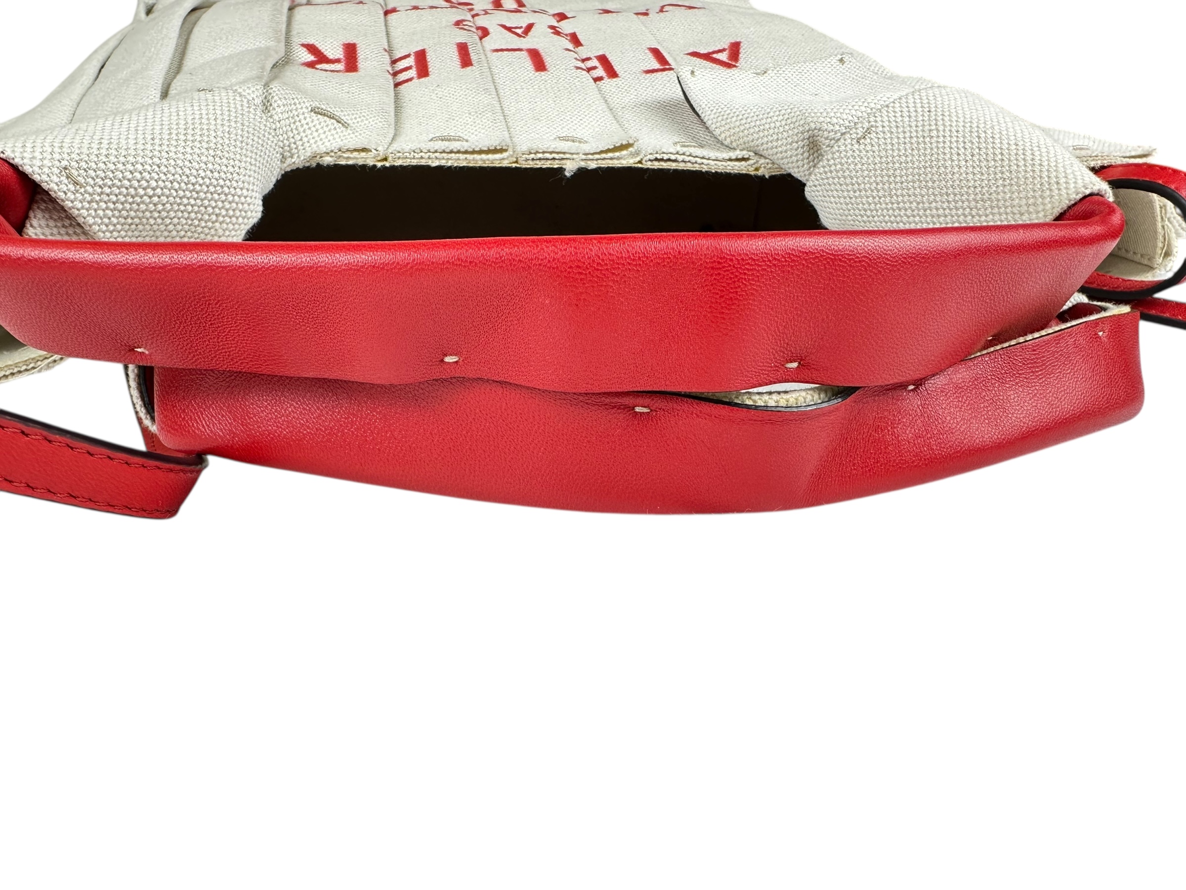 Borsa Valentino Garavani Tote Atelier Bag 05 in Tessuto Bianca e Rossa, accessoriata con pochette in morbida pelle rossa, utilizzabile anche da sola.
