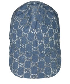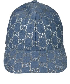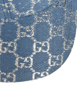 Cappello da Baseball Gucci con Motivo GG in Blu e Lamé Argentato.