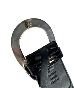 - Dettagli in pelle nera lucida effetto coccodrillo