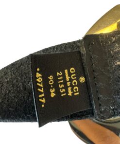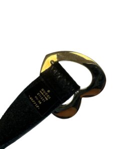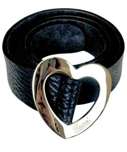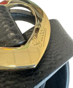 La fibbia a cuore color oro impreziosisce questa Cintura Gucci in Pelle Nera con Fibbia Dorata Cuore.