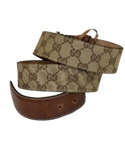 Cintura Gucci in Tela Canvas Marrone e Beige.