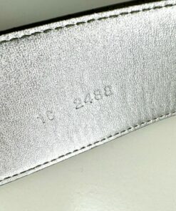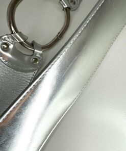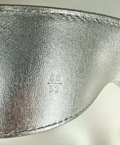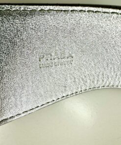 Cintura Prada in pelle color argento, con fibbia ovale in metallo argentato.