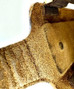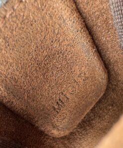 Chiusura stretch, dettagli in pelle marrone e metalleria dorata con logo Louis Vuitton.