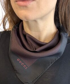 Elegantissimo Foulard fazzoletto Gucci in Seta Nera a Pois Rossi.