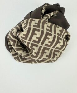 Foulard Fendi FF in seta Marrone e Beige, perfetto sia per donne che per uomini.